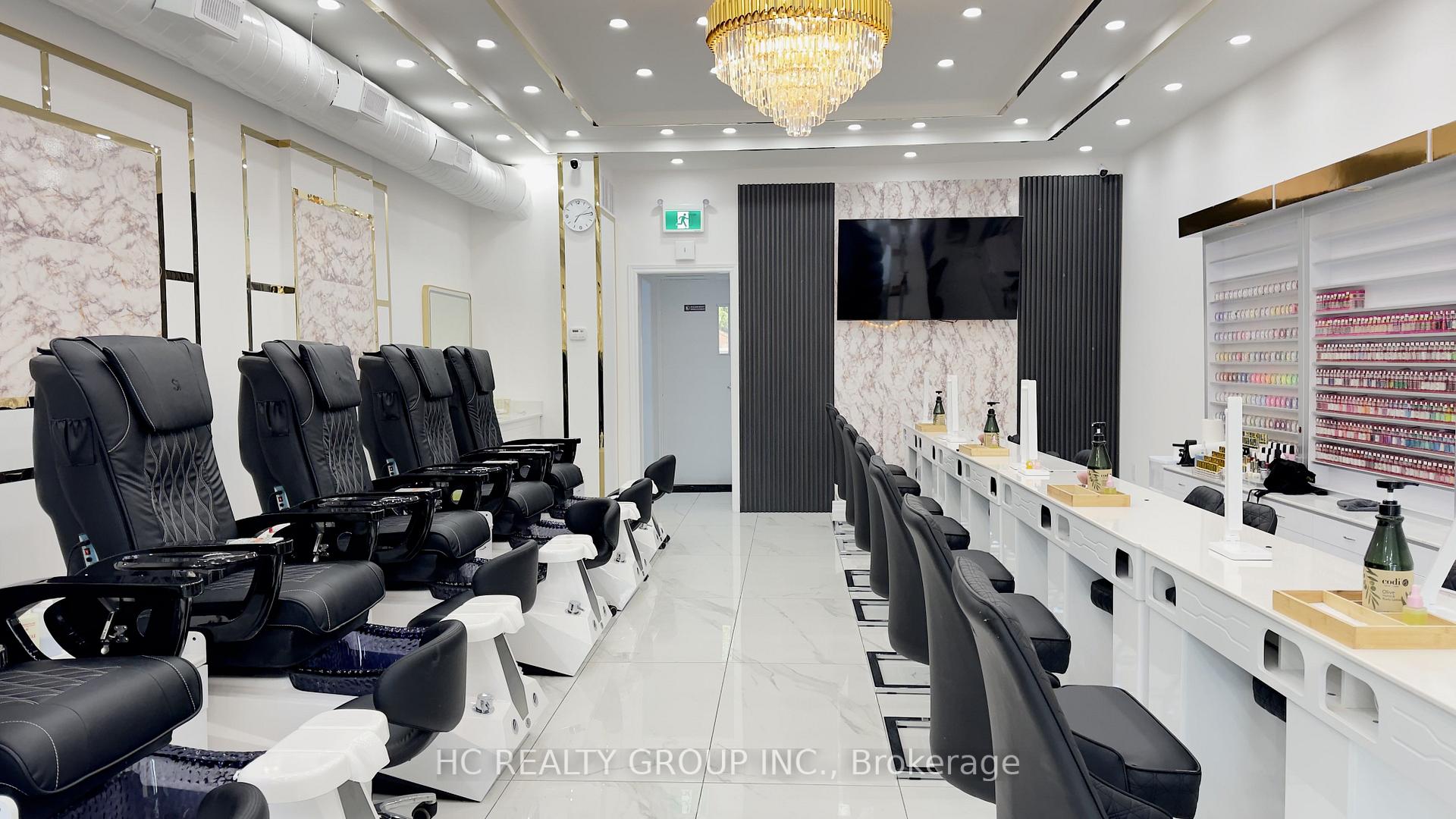 Modern Turnkey Nail Salon located at Premium Midtown Toronto (Eglinton & Chaplin). High-income demographic, surrounded by luxury condos and offices, Walking distance to Chaplin LRT Station. Less than 2 years built with Modern design, zero renovations needed. Full glass storefront with high road exposure and free parking for clients/staff and 2 exclusive parking spots. Private Wax Room, large Staff Breakroom, 2 Washrooms, 950 sqft on main plus basement also included. Includes: 9 Manicure stations, 7 Luxury Pedicure chairs (plumbed for an 8th).All furniture, high-end equipment, inventory, website, and social media.Rent: $5,100/month (Water included, tenant pays hydro only).Term: 3 years remaining + Two 5 year renewal option.