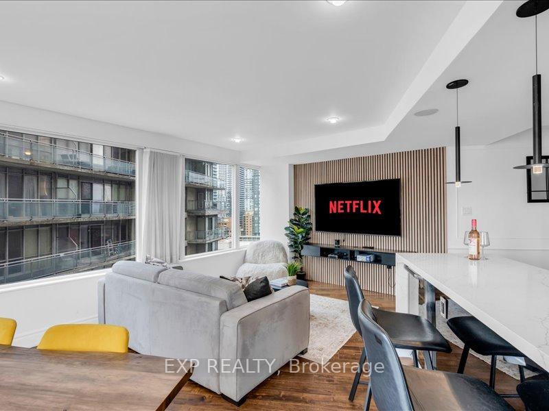 Location, style, and breathtaking views this modern 2 bedroom, 2 bathroom residence in the heart of downtown Toronto truly has it all. Situated in the highly sought-after Pantages Tower, this TURNKEY home combines contemporary finishes, generous living space, and unbeatable convenience. The bright and open layout features a sleek kitchen with quartz countertops, stainless steel appliances, and an island perfect for entertaining or casual dining. The spacious living area easily accommodates a home office setup or cozy breakfast nook, all framed by floor-to ceiling windows showcasing stunning views of the Toronto skyline. The primary bedroom is a private retreat with a beautiful ensuite bathroom, while the second bedroom is highlighted by large windows and its own electric fireplace, creating a warm and inviting atmosphere. Every detail is designed for comfort, functionality, and style. Beyond the suite, Pantages Tower offers residents access to exceptional amenities including24-hour concierge, fitness facilities, party room, guest suites, and more. Step outside your front door and you're only moments away from Toronto's most iconic destinations Yonge-Dundas Square, the Eaton Centre, Massey Hall, theatres, restaurants, and shops. With the subway and TTC nearby, the entire city is at your fingertips. This unit also presents an extraordinary investment opportunity. Short-term rentals are permitted in the building, and this particular unit has generated six-figure annual income, making it ideal for investors seeking reliable passive revenue. Offered fully furnished with FURNITURE AND DECOR INCLUDED and, it is a true TURNKEY opportunity with nothing left to do but move in or start renting immediately. Whether you're looking for a stylish urban home or a high-performing investment property, this residence delivers the best of downtown living.