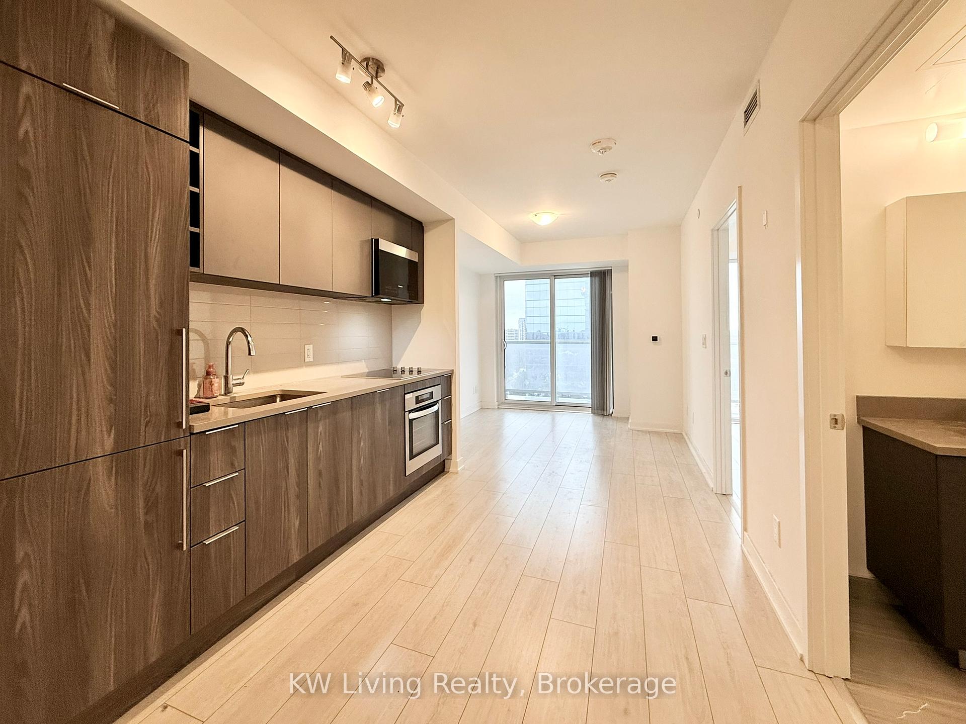 Welcome to K Square Condos! This two-year new, 1-bedroom plus den unit offers 547 sq. ft. of bright, modern living space. The exceptionally large and versatile open den offers lots of options: perfectly suited as a professional home office, a quiet study, or even an guest bedroom. The interior boasts a functional open-concept layout with 9' ceilings, floor-to-ceiling windows for maximum natural light, and a modern kitchen with integrated stainless steel appliances and quartz countertops. Enjoy your morning coffee on the massive private balcony with unobstructed views. One parking spot is included. Residents have access to elite amenities including a 24-hr fitness centre, private library, contemporary sports bar, and a rooftop terrace. Unbeatable location at Kennedy & Hwy 401-steps to Agincourt GO, TTC, tons of restaurants and shopping at Kennedy.