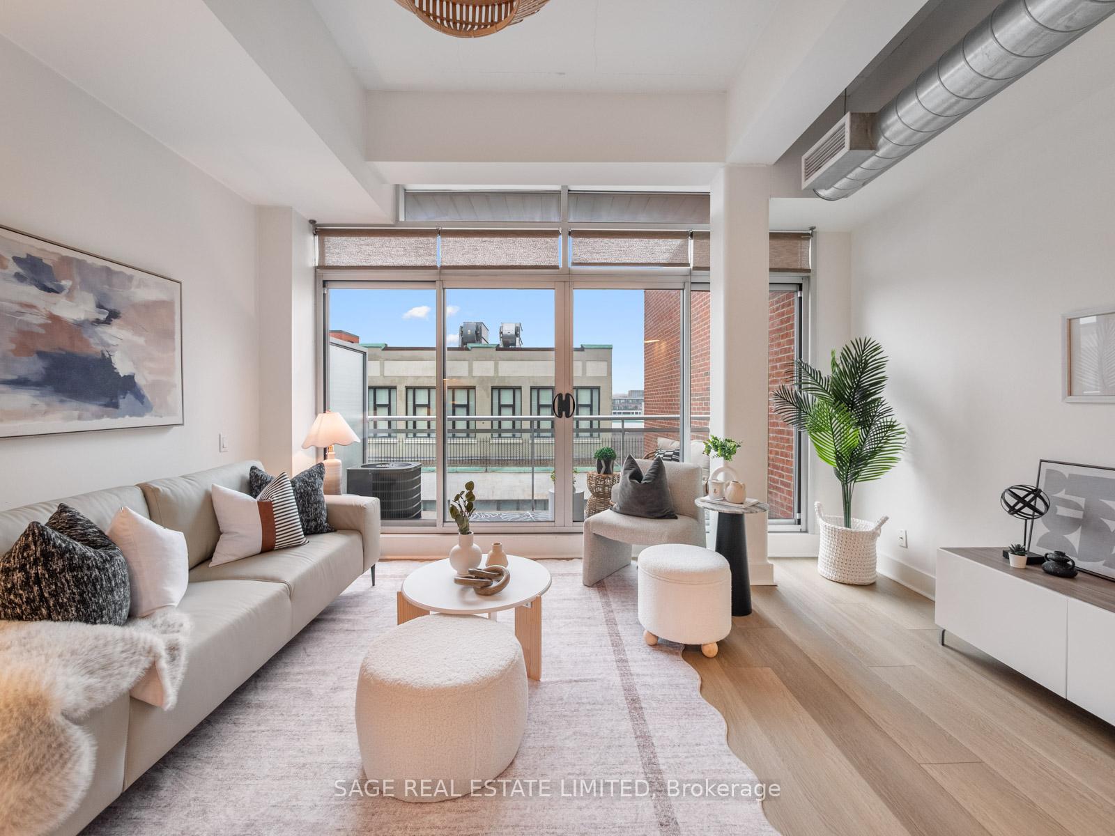 Catch your breath! Welcome to Your penthouse level loft at Toronto's favourite loft conversion.Leslieville's Finest Garment Factory Lofts. Suite features a Living space with an open-concept layout. Serene north views, full of natural light. Balcony approximately 40 square feet with gas line for BBQ. A storage locker included.Formerly a garment factory, this building was converted into both hard and soft lofts by adding four stories atop the original structures. Situated between the Printing Factory Lofts and the Wrigley Lofts, this structure is an "inspired" combination of old and new, using glass, steel and brick to reflect its industrial roots with a contemporary feel.The Garment Factory Lofts house 150 hard and soft lofts, with exposed concrete ceilings, polished concrete floors and large warehouse windows, adding much natural light to these open concept units.Unbeatable location: located just a stone's throw from Jimmy Simpson Park and the Queen Street and Dundas streetcars, this Toronto condo offers residents easy access to all the convenience and amenities of the downtown core amid an abundance of green space.