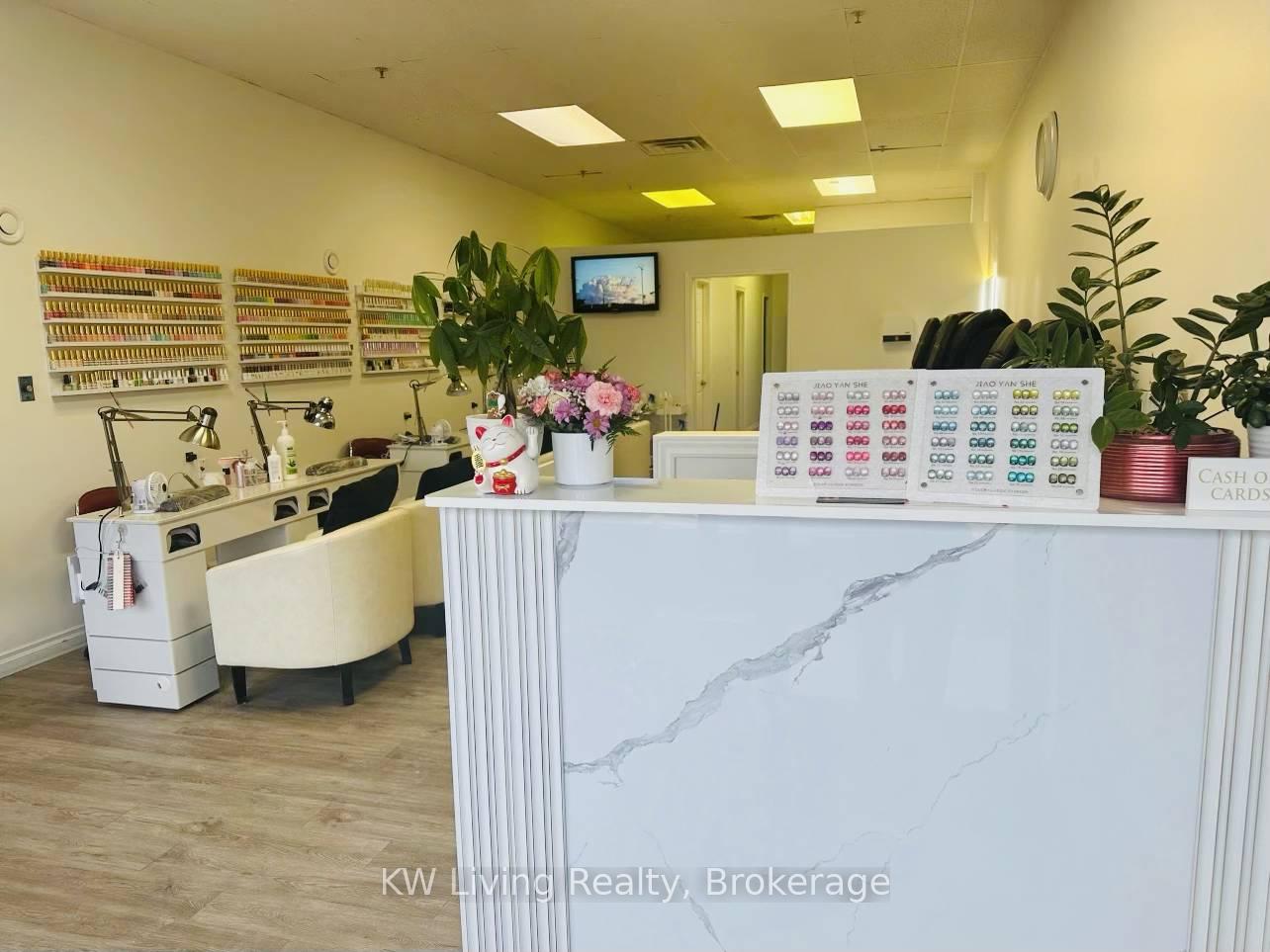 Turnkey nail salon for sale in a busy, high-traffic plaza with ample parking, co-tenanted with Shoppers Drug Mart, Pet Valu, Subway, Pizza Pizza, Arby's, along with other restaurants, medical offices, and professional services, ensuring strong and consistent foot traffic. The well-appointed space features 5 manicure tables, 5 pedicure chairs, 2 treatment rooms, a staff room, a washroom, and an en-suite laundry area. Attractive lease at $4,000/month, including TMI and HST, secured until December 2029 with a 5-year renewal option-ideal for an owner- operator or investor seeking a stable, established business location.