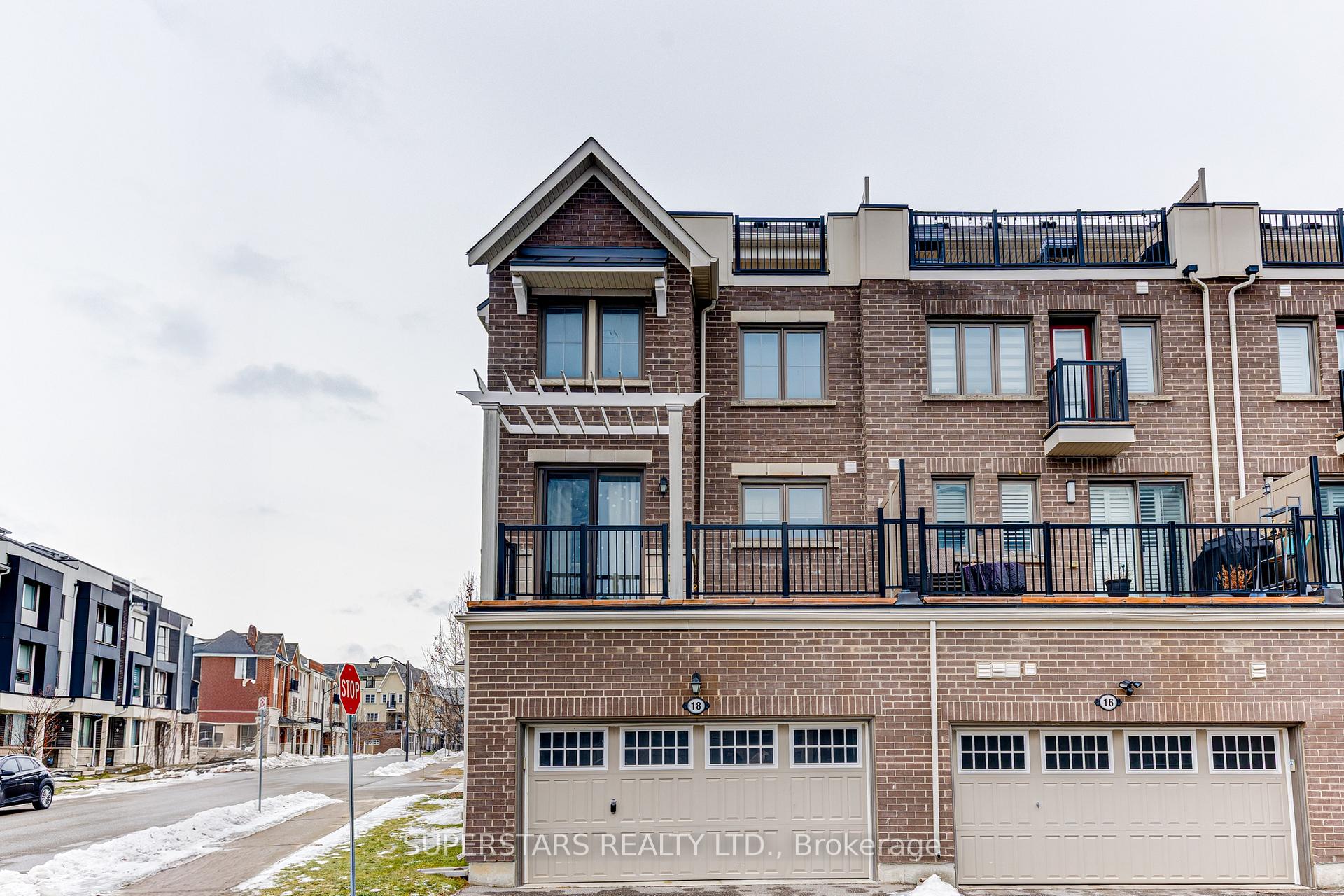 Enjoy Modern Living At This Sun-filled End-unit Townhouse On A Desirable Corner Lot With A Rare Double Car Garage And Over 2000 Sq Ft Of Thoughtfully Designed Space. This 4-bedroom Home Features A Bright, Functional Layout Enhanced By Fresh Paint And Upgraded Light Fixtures. The Spacious Kitchen Offers An Upgraded Countertop And Backsplash, A Center Island, And Extra Cabinetry, Flowing Seamlessly Into The Dining Area With A Walk-out To The Balcony. The Upper Level Hosts 3 Bedrooms, Including A Primary Suite With A 3-piece Ensuite And Charming Juliet Balcony. The Ground Level Provides A Private Ensuite Bedroom Ideal For Guests Or Extended Family. Direct Access To The Double Garage Adds Everyday Convenience. Outdoor Living Shines With A Generous Balcony And An Impressive Rooftop Terrace, Perfect For Relaxing Or Entertaining. Top Ranking Schools. Minutes To Markham Stouffville Hospital, Cornell Community Centre, Cornell Library And Cornell Bus Terminal. Quick Access To Grocery Stores, Restaurants, And Daily Conveniences.