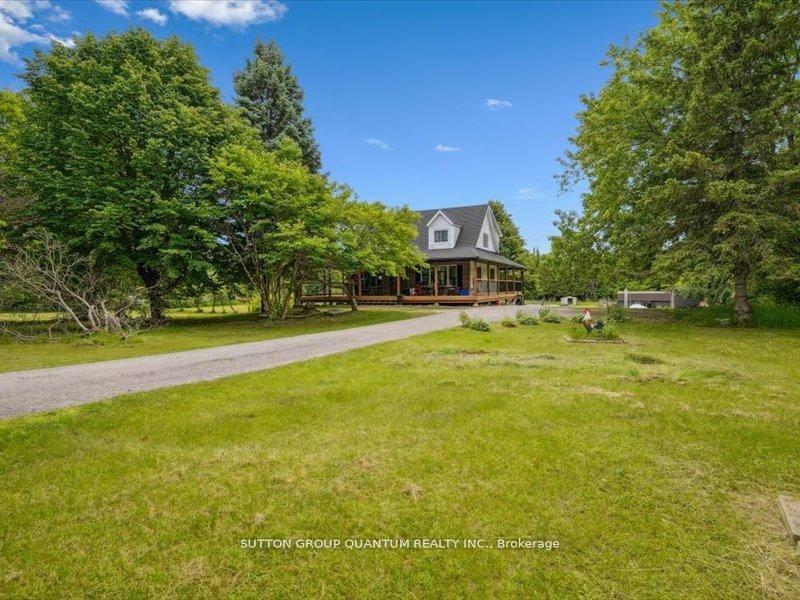 Charming 10-Acre Country Escape Awaits! Escape the hustle and bustle of city life and discover this beautiful 10-acre hobby farm, offering eastfacing exposure on a year-round accessible road. This country home features an inviting wrap-around covered deck, perfect for enjoying peaceful mornings and relaxing evenings. Inside, the spacious living and dining area boasts hardwood floors and blinds for added privacy. The large eat-in kitchen, complete with a sliding door walkout, seamlessly blends indoor and outdoor living. Working from home is a breeze with the main floor den, providing a quiet space to focus. Upstairs, you'll find three bedrooms, one of which is currently utilized as a laundry room for added convenience. The basement presents the possibility of a fourth bedroom along with a recreation room, ideal for entertaining or unwinding. The level yard offers ample opportunities for gardening whether you want to plant your favorite flowers or start a vegetable garden and is perfect for pets to roam freely. Set back from the road, this property provides privacy and seclusion, making it the perfect retreat from city life. Don't miss your chance to own this charming property!