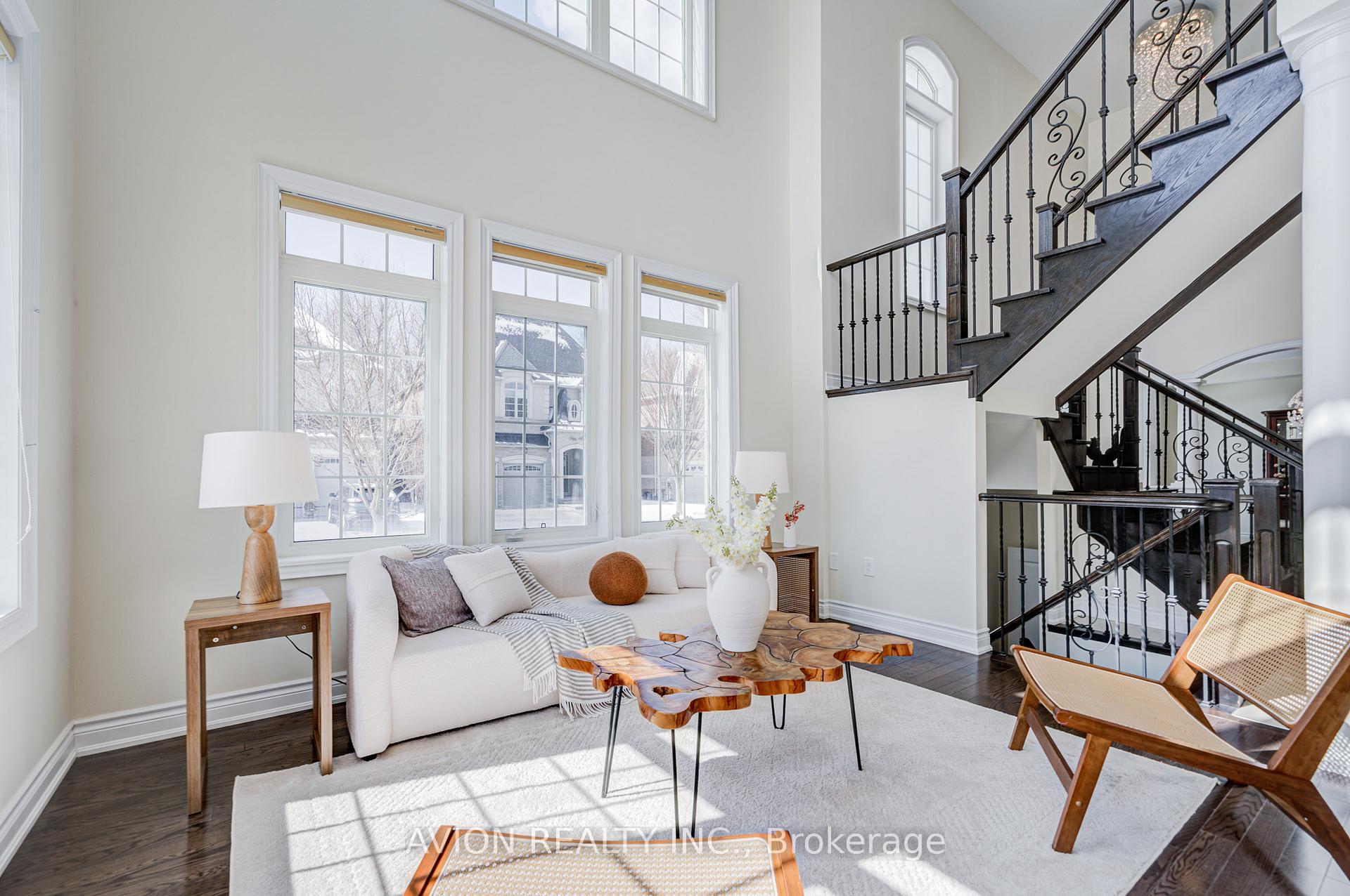 Welcome to this impeccably maintained 4-bedroom residence, thoughtfully designed for the modern growing family. The stunning main floor showcases dramatic 18-ft (approx.) open-to-above ceilings in the living room, complemented by expansive windows that flood the space with natural light. Elegant hardwood flooring extends throughout the main and upper levels.The open-concept kitchen features granite countertops and high-end appliances, seamlessly flowing into a bright breakfast area and inviting family room. A separate formal dining room, enhanced with designer lighting, creates the perfect setting for refined entertaining.Upstairs, you'll find 4 generously sized bedrooms and 3 full bathrooms, offering exceptional comfort and functionality for the entire family. The walk-up basement presents outstanding potential for a recreation space, home theatre, or private guest suite.Step outside to a beautifully interlocked, low-maintenance backyard-ideal for effortless outdoor enjoyment. Conveniently located just minutes from Vaughan Mills, Canada's Wonderland, schools, and major highways, this home delivers an exceptional blend of luxury and everyday convenience.