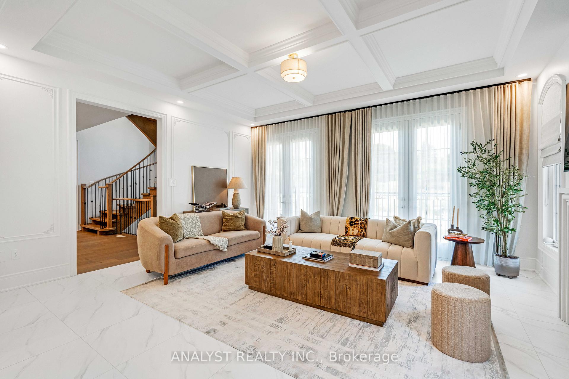 Fully renovated luxury residence built by Fandor Homes in 2023. Set in one of Nobleton's most desirable communities, this executive home offers approximately 3,750 square feet of elevated living space with five spacious bedrooms and five beautifully appointed bathrooms. From the moment you step inside, you're met with an uncompromising level of quality, craftsmanship, and attention to detail. The main floor features soaring 10-foot ceilings, smooth finishes, open riser stairs, designer wall paneling, and engineered hardwood flooring throughout. The heart of the home is the custom chefs kitchen, complete with fluted cabinetry, a dramatic range hood, premium paneled appliances, a Wolf induction cooktop, a waterfall quartz island, and an integrated servery all finished with exquisite marble herringbone backsplash and open shelving. The family room offers a custom fireplace framed by a waffle ceiling, while the formal dining area is enhanced by a coffered ceiling and designer wallpaper, creating an atmosphere of refined elegance. A custom-built library adds a timeless, functional touch to the main floor layout. Upstairs, nine-foot ceilings carry through to five generous bedrooms, each finished with custom blackout blinds and designer wallcoverings. The primary suite includes walk-in closet and a spa-inspired ensuite that exudes luxury. Every bathroom features upgraded tile work, quartz finishes. pot lights throughout, 24-inch tile in the foyer and kitchen, custom drapery and Roman shades, and smooth ceilings across both levels. Outside, enjoy a professionally landscaped backyard oasis featuring a custom concrete patio, pergola, and built-in hot tub perfect for relaxing or entertaining. With no sidewalk, the extra-long driveway comfortably fits four vehicles. This exceptional property offers an unmatched blend of luxury, comfort, and design in a premium location. Truly turnkey and one-of-a-kind a rare offering in todays market.