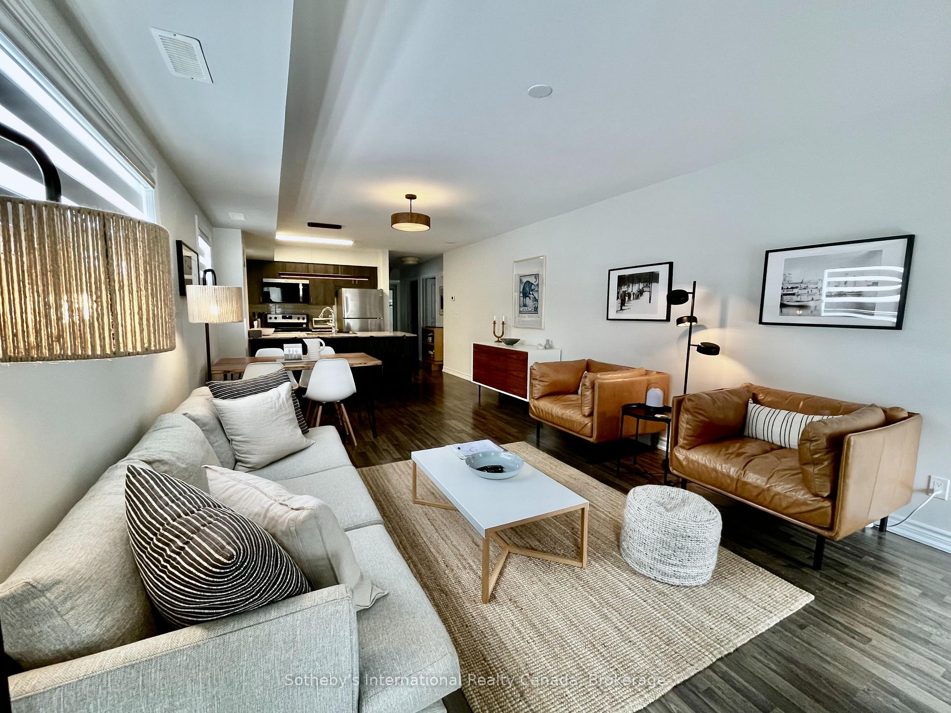 Spring/Fall Waterfront Community Seasonal Rental - Experience refined waterfront living in the heart of Collingwood. Luxurious seasonal rental opportunity in one of the area's most sought-after Georgian Bay waterfront communities. (Not available July & August 2026) This ground-floor end unit condo offers 1,284 sq. ft. of beautifully appointed modern living space just steps from the water's edge. Wake up to sparkling views of Georgian Bay and the iconic lighthouse from the serene primary bedroom with private ensuite. Hear the waves roll in from your expansive private patio overlooking manicured parkland, pathways, green space, and the community pool and gym facility. A second patio off the modern chef-inspired kitchen, complete with stainless steel appliances and island seating for three making outdoor dining and BBQ entertaining effortless. This bright and spacious 3 bedroom, 2 bath luxury condo features open-concept great room with gas fireplace, Large windows with roller shades throughout, Main floor laundry, storage, Assigned parking & visitor parking. Step outside for direct bay access ideal for canoeing, kayaking, paddle boarding, swimming, and embracing four-season recreation. Minutes to downtown Collingwood, Blue Mountain, Craigleith, Alpine, premier golf courses, hiking trails, boutique shopping, and renowned restaurants. Secure your waterfront escape for 2026. Active Living at its finest! Utilities in addition to rent. Available dates April 1 - June 30 & September 1 - December 18 2026. Not available for ski season or annual rent.