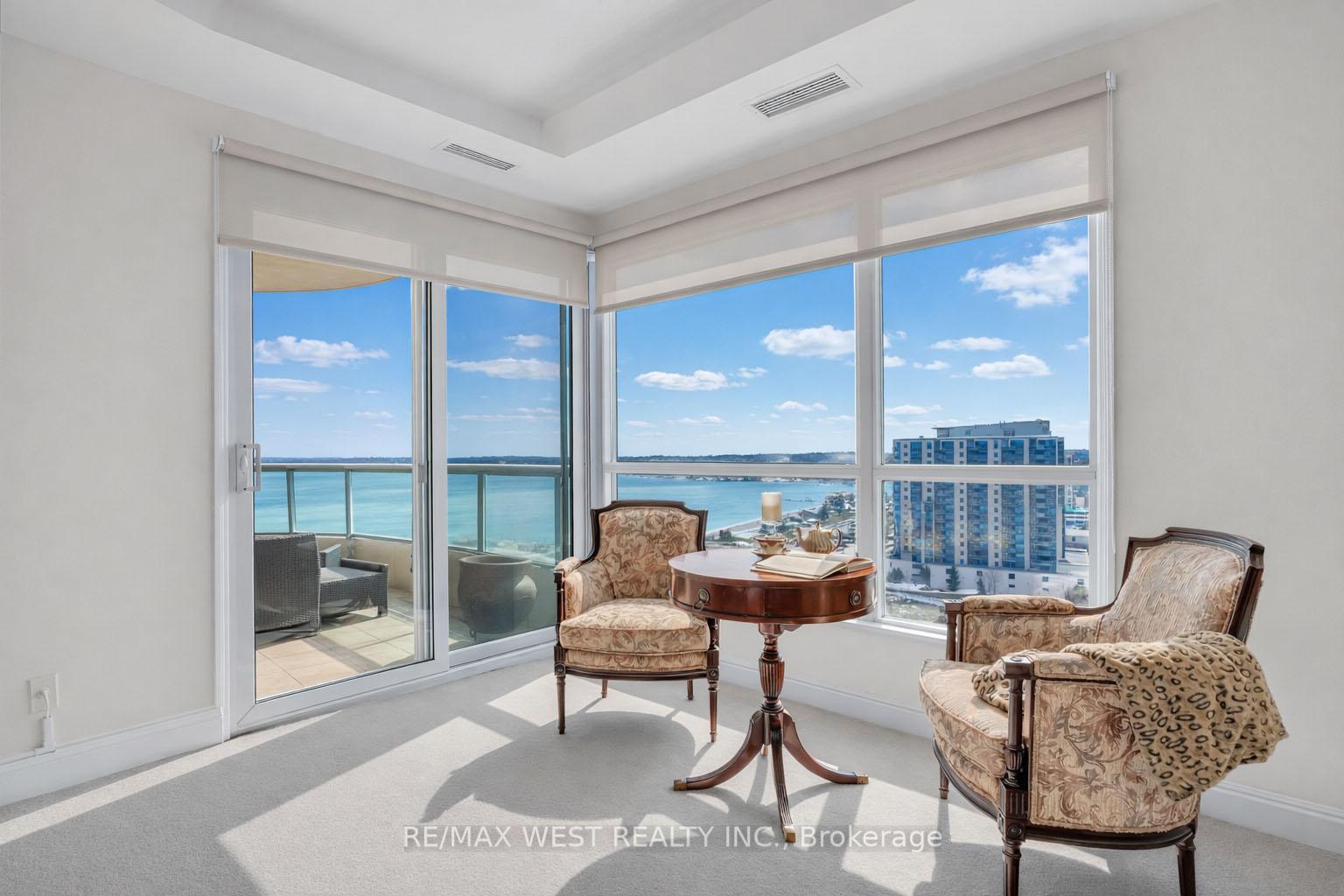Experience penthouse living on Barrie's spectacular waterfront. Welcome to the Crown Jewel of Grand Harbour - a rare 3-bedroom, 2-bathroom penthouse residence offering breathtaking, unobstructed views of Kempenfelt Bay. Perched high above the bay, this exceptional suite is filled with natural light through expansive walls of windows that beautifully frame sweeping views across Kempenfelt Bay and the surrounding shoreline. The open-concept layout blends refined elegance with everyday comfort, creating an inviting space ideal for both entertaining and relaxing while taking in the stunning waterfront scenery. Two private balconies provide the perfect setting for sunrise coffees or evening sunsets over the bay. The spacious primary retreat features its own private balcony, walk-in closet, and spa-inspired ensuite - creating a serene sanctuary above the city. Additional features of this exceptional residence include two premium parking spaces, a large private storage unit, and access to outstanding building amenities. Ideally located just steps from Barrie's vibrant downtown, marina, waterfront trails, restaurants, and shops, this residence offers the very best of luxury waterfront living. A truly rare penthouse opportunity.