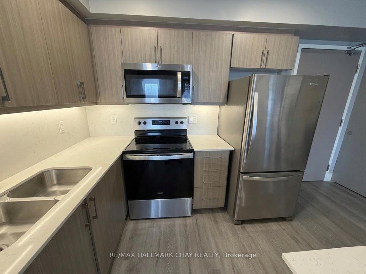 Located in the North-end of Barrie, this spacious 830 sq ft condo at 58 Lakeside Terrace offers a perfect blend of modern living and unparalleled convenience. This well-appointed unit features two generous bedrooms and two full bathrooms, providing a comfortable and functional layout that is ideal for professionals or small families. The property is available for lease starting May 1, just in time to enjoy the beautiful spring and summer seasons in this lakeside community. Residents will have access to an impressive suite of building amenities designed to enhance every lifestyle. The building includes a fully equipped gym, a dynamic games room, and an elegant party room for hosting social gatherings. For those who enjoy the outdoors, the rooftop terrace offers a stunning space to relax and take in the surrounding views. Practical needs are also well-covered with a underground parking space and a convenient on-site dog wash room for pet owners. The location is truly a standout feature of this property, as it is situated just moments away from the HWY 400 for easy commuting. You will find yourself within a very short drive to Georgian College, the Royal Victoria Regional Health Centre, and the extensive North Barrie Crossing shopping centre. This bustling hub provides immediate access to every essential, including major grocery store, LCBO, movie theatre, fitness centre, gas station, and a diverse selection of popular restaurants. This rental offers a rare opportunity to live in a clean, contemporary space surrounded by the very best amenities Barrie has to offer. Please not that photos have been edited with A.I. to maintain the privacy of the tenant's personal items.