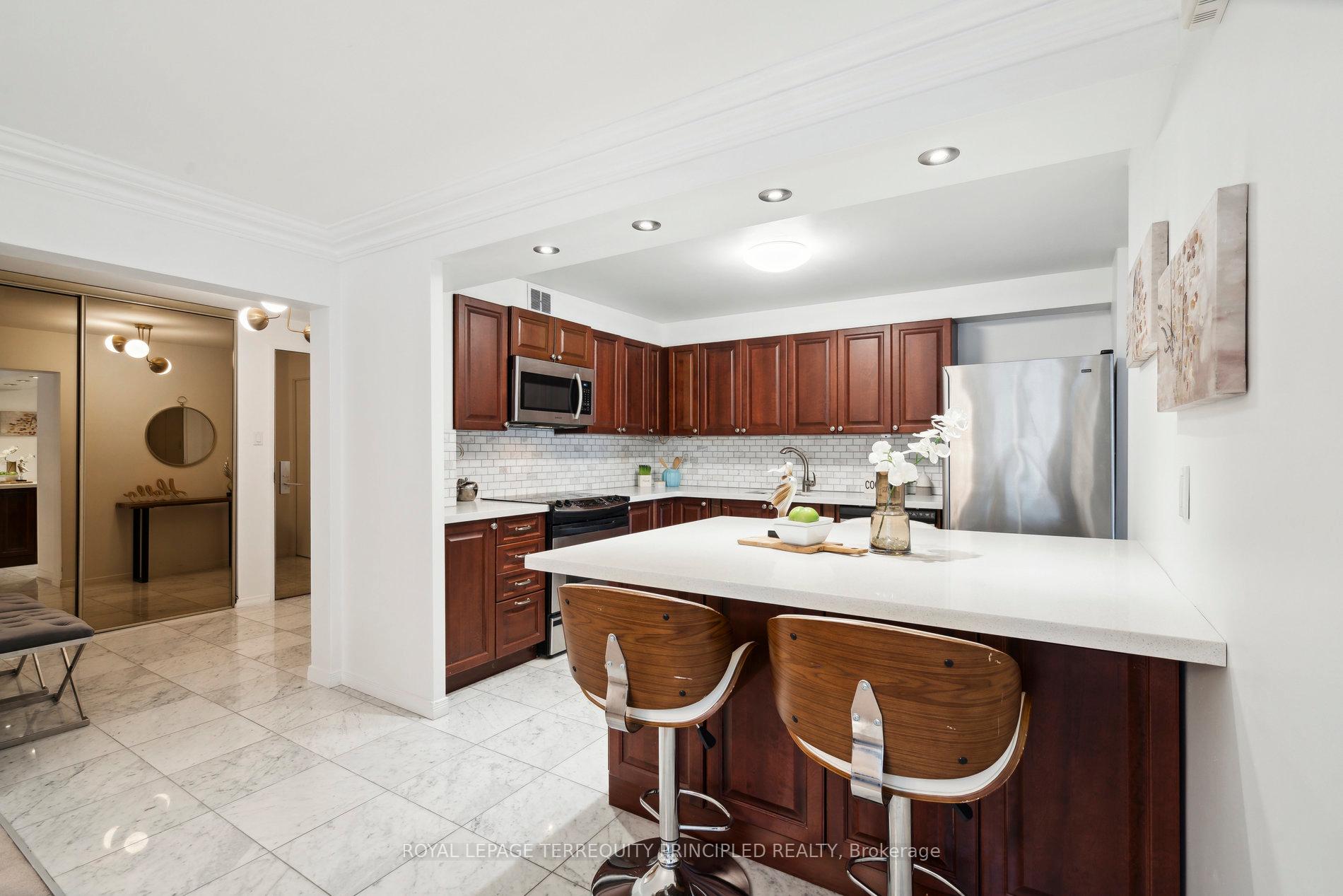 Voted Condo of the year in 2021! Life is grand at the well-run Fairways, nestled alongside golf courses. This 3 bed, 2 bath unit features open concept kitchen with island breakfast bar, a unique office area between the large living room and separate dining room. Spacious bedrooms all feature at least a double closet and a window. Don't need 3 beds? Use the 3rd bedroom as a 2nd living/office area. Excellent, resort-style amenities include outdoor tennis and shuffleboard courts, BBQ area, billiards room, gym, hobby rooms, outdoor pool and many more. Calendar of events have included yoga days, live music/piano recitals, and more. Access the pool easily from your unit by going down a single flight of stairs! Book your private events at Historic McMaster House located on site. Easy access to freeways, shopping, the lake and includes both a gate house and building concierge. You can have it all in this 1,665 sq ft unit at the Fairways! Note that building does not allow dogs.