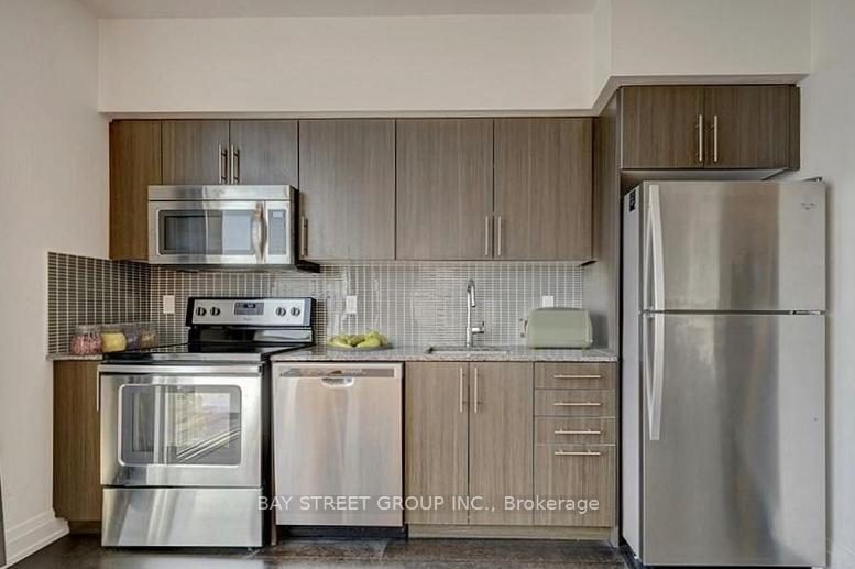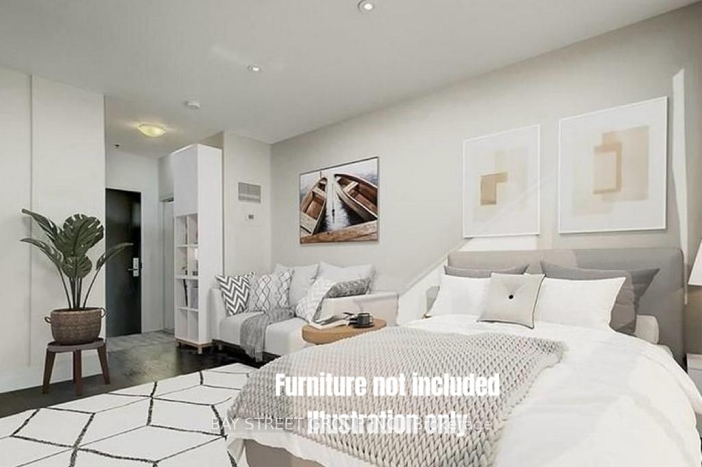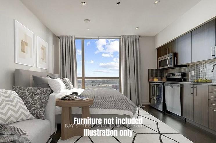 Rarely Offered Studio Suite In The Sought-After Rain Condos, Ideally Located In The Heart Of Trendy Kerr Village. This Thoughtfully Designed Unit Features Tall Ceilings, Dark Flooring, Stainless Steel Appliances, In-Suite Laundry, And An Oversized West-Facing Floor-To-Ceiling Window With Unobstructed Views, Filling The Space With Natural Light. The Building Offers Premium Amenities Including 24-Hour Concierge, Indoor Pool, Gym, Party Room, Rooftop Terrace. One Parking Space And One Locker Included. Steps To Grocery Stores, Cinema, And The Vibrant Dining Scene Along Kerr Street, With Easy Access To The GO Station, Public Transit, Major Highways, And The Oakville Waterfront.