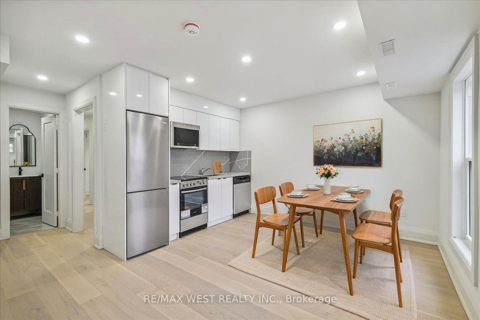 Street parking permit available from city. Private entrance to renovated kitchen and appliances. Custom textured wall and pot lights. Large 3 piece bath with walk in shower. Private laundry, separate tankless hot water heater and furnace allowing you to control your own temperature. Steps to GO train up express (21 min to Pearson, 9 min to Union), Bloor, TTC, Railpath, groceries, restaurants and parks. Perfect for commuters downtown and the airport.