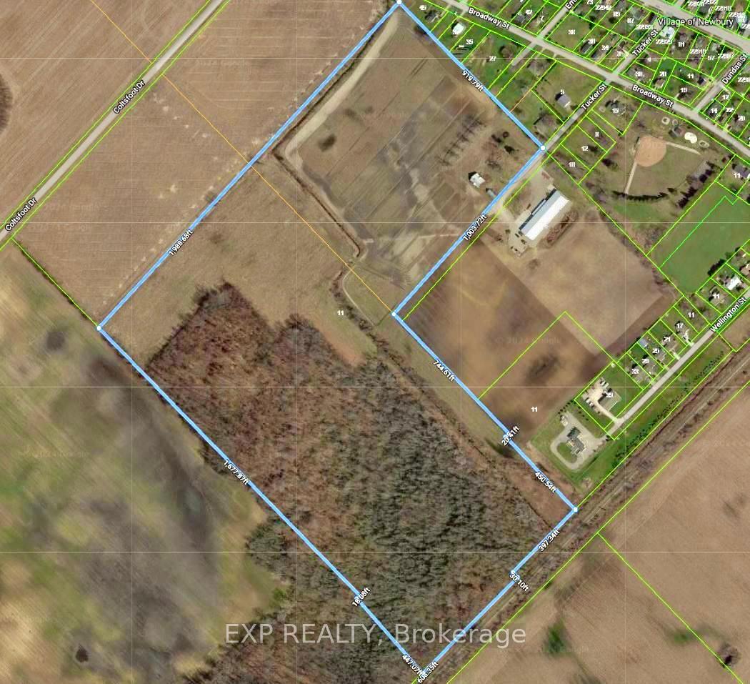 Own 69.76 acres of certified organic farmland in Newbury & Southwest Middlesex. With 30 acres of workable land and direct access from paved Tucker Street, this property sits beside a growing residential subdivision offering both agricultural value and future development potential. Village of Newbury capacity at 44.48% of rated 297m3 for wastewater treatment & sewage. The land features a 104' x 50' insulated metal shop with 16' ceilings, three 14' x 12' overhead doors, a 10' x 8' loading dock door, walk-in cooler, Hydro vegetable cooler, two washrooms, shower, kitchenette with stove, washer/dryer, and office space. Two fully serviced bunkhouses include kitchens, baths, heat & A/C ideal for seasonal workers or extra space. A roadside shed and a 40' x 20' barn (needs repair or removal) add further utility. Water and drainage are excellent with a large irrigation pond (approx. 75' x 150', 25' deep), a surrounding creek, and tiled fields. City water, sewer, and gas are at the lot line; currently serviced by propane and 200 Amp electrical. The Township has shown a favorable stance toward rezoning, making this a smart investment for farmers, developers, or agri-business owners. Don't miss this rare chance to secure a versatile property with strong income potential and long-term upside. Development potential. Seller may be open to vendor takeback. Book your showing today!