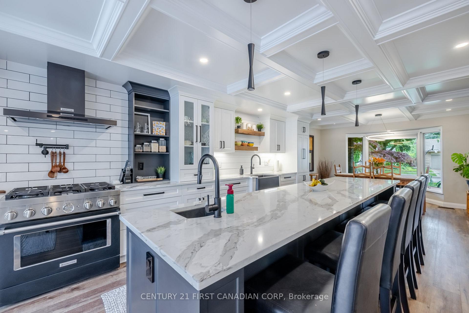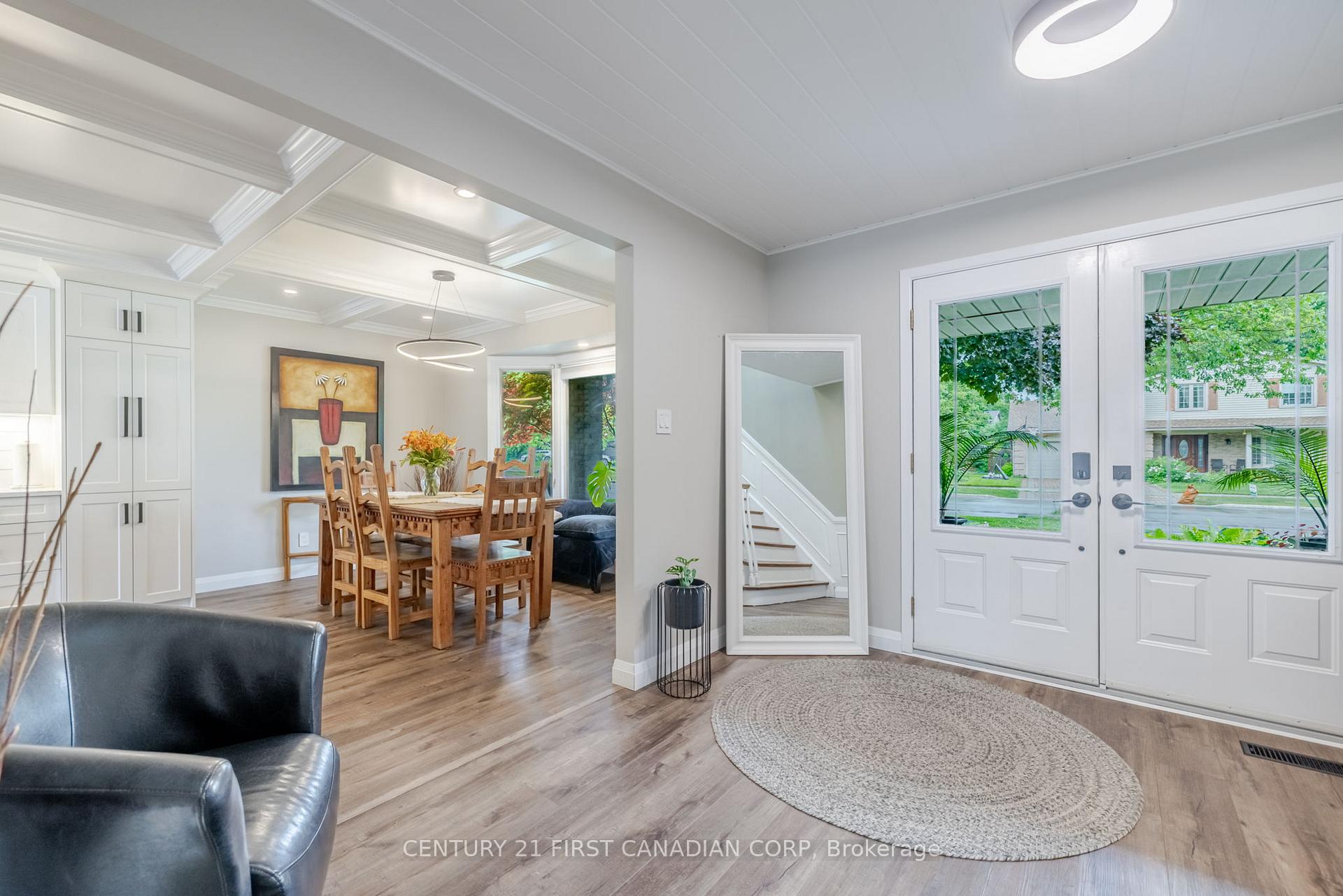 A MUST SEE! View this WELCOMING family home, well maintained and cared for with many recent Modern Upgrades. Spacious 3000 sq feet of living space offering 5+1 bedrooms and 3 baths! Beyond a landscaped pathway and covered porch, with impressive double glass door entrance and views all the way down your 25' deep GOURMET KITCHEN added in 2022. Stunning 12ft quartz island with crowned charcoal, white cabinets, pot filler, lapboard and subway splash. PLUS 5 Kitchen Aid appliances with oversized 3 wide state-of-the-art stove . A regal coffered ceiling with pot lights leads to your coffee bar and sunroom overlooking your southern exposed fully-fenced PRIVATE POOLSCAPE BACKYARD OASIS!! A stamped concrete patio offers two patio door accesses for excellent flow for entertaining. Luxury plank throughout both levels, with a bright airy open concept layout. A convenient side entry mudroom, along with an oversized main floor laundry room for easy access. Up a wide natural wood staircase, your MASSIVE PRIMARY RETREAT offers a walk-in closet and glass shower ensuite. Another 4pc bathroom with double sink quartz vanity, espresso cabinets and 4 other ample bedrooms fits a full-size family. Lower level offers TONS of dry storage, cold-room, exercise area + 6th room with light of an oversized egress window. Boasts further: Skylight, Lincoln style doors and trim with new hardware throughout, Modern fixtures, High-efficient furnace, A/C 2021, washer/ dryer 2021. City Permits for structural, HVAC & plumbing upgrades. ESA certified Panel Upgrade! IDEAL LOCATION steps from parks, paths, top schools, UWO, UH and all the charm of Stoneybrook!