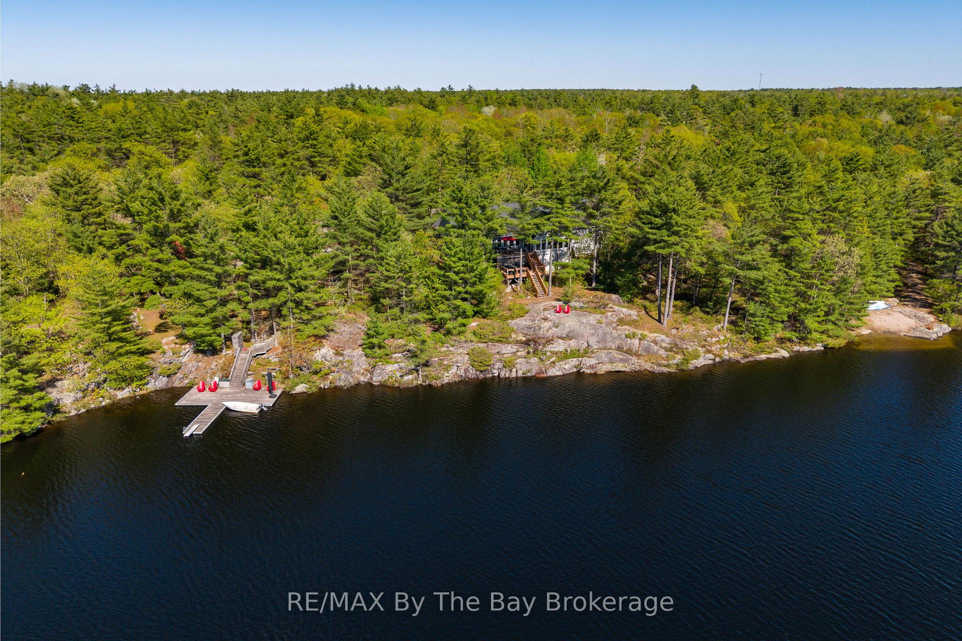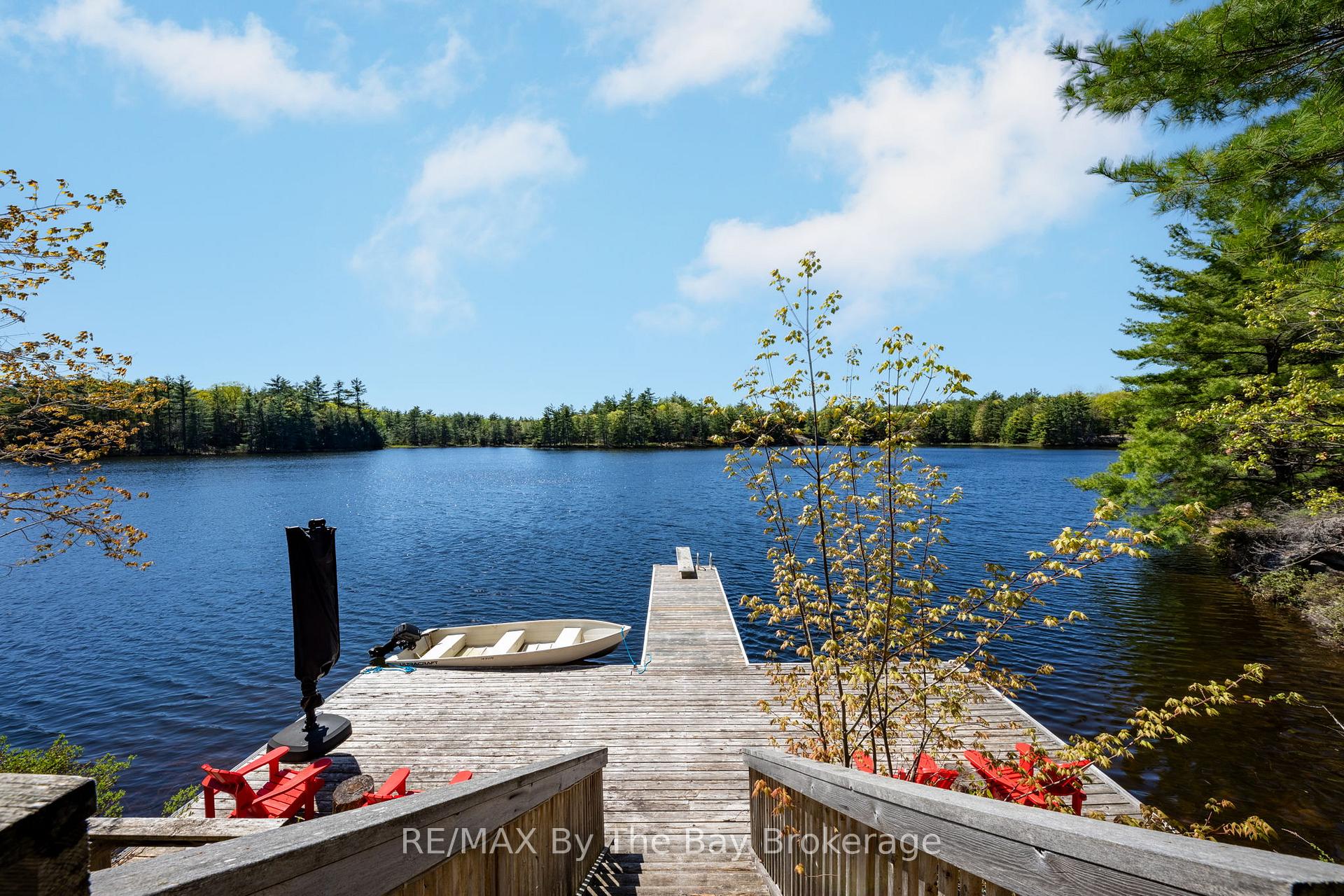 Only ten minutes west of Hwy 400 (Exit 168), this extraordinary 46-acre property offers the ultimate in privacy, natural beauty, and refined lakeside living. With 482 feet of west-facing rocky shoreline on Buck Lake and thousands of acres of pristine Crown land as your neighbour, this is a rare opportunity to own a true sanctuary. The 2,200 sq. ft. ranch-style, four-season home is beautifully finished, fully furnished, and move-in ready. Step inside to an open-concept living space featuring vaulted ceilings with exposed beams, antique wide-plank pine floors, and a chef's kitchen overlooking a breathtaking stone fireplace and sweeping lake views. The roof and decks have recently been replaced, while the attached two-car garage provides secure, weather-protected entry. Guests will fall in love with the spacious cedar guest cabin, complete with a main-floor bedroom, loft bedroom with lake views, and a large sun deck. A short path leads to the deep-water dock, where crystal-clear swimming and unforgettable sunsets await. This property is equipped with a wired-in generator, 400-amp electrical service, and all the comforts for year-round enjoyment. Buck Lake is a spring-fed, 50-foot-deep lake, with exceptional swimming, fishing, and tranquility - with only five cottages along its eastern shore. The lake is surrounded by Crown land, offering endless trails for hiking, snowmobiling, and exploration in every season. Whether you're seeking a private retreat, family cottage compound, or nature lover's paradise, this property delivers a lifestyle few will ever experience.