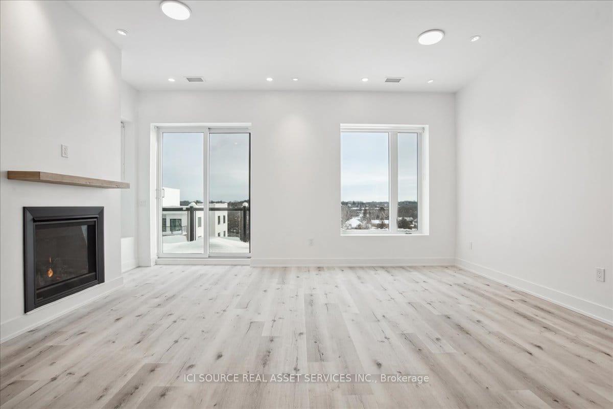 Luxury resort-style penthouse living overlooking Cameron Lake in the heart of Fenelon Falls. This exceptional 1,310 sq ft residence offers breathtaking year-round lake views and a private outdoor terrace designed for relaxed waterfront living. The bright, open-concept layout features 10-ft ceilings, expansive windows, and stylish vinyl flooring throughout. The chef-inspired kitchen is equipped with quartz countertops, stainless steel appliances, a generous center island, and abundant storage-perfect for both everyday living and entertaining. The living and dining area is anchored by a cozy gas fireplace and provides seamless access to the terrace, complete with a gas BBQ hookup. Both bedrooms are impressively sized, including a luxurious primary retreat with its own walk-in closet, and a spa-like 4-piece ensuite. Residents enjoy premium amenities including an outdoor pool, landscaped lounge areas, fitness center - offering true lakeside living with the convenience of being steps from the charm of Fenelon Falls. *For Additional Property Details Click The Brochure Icon Below*