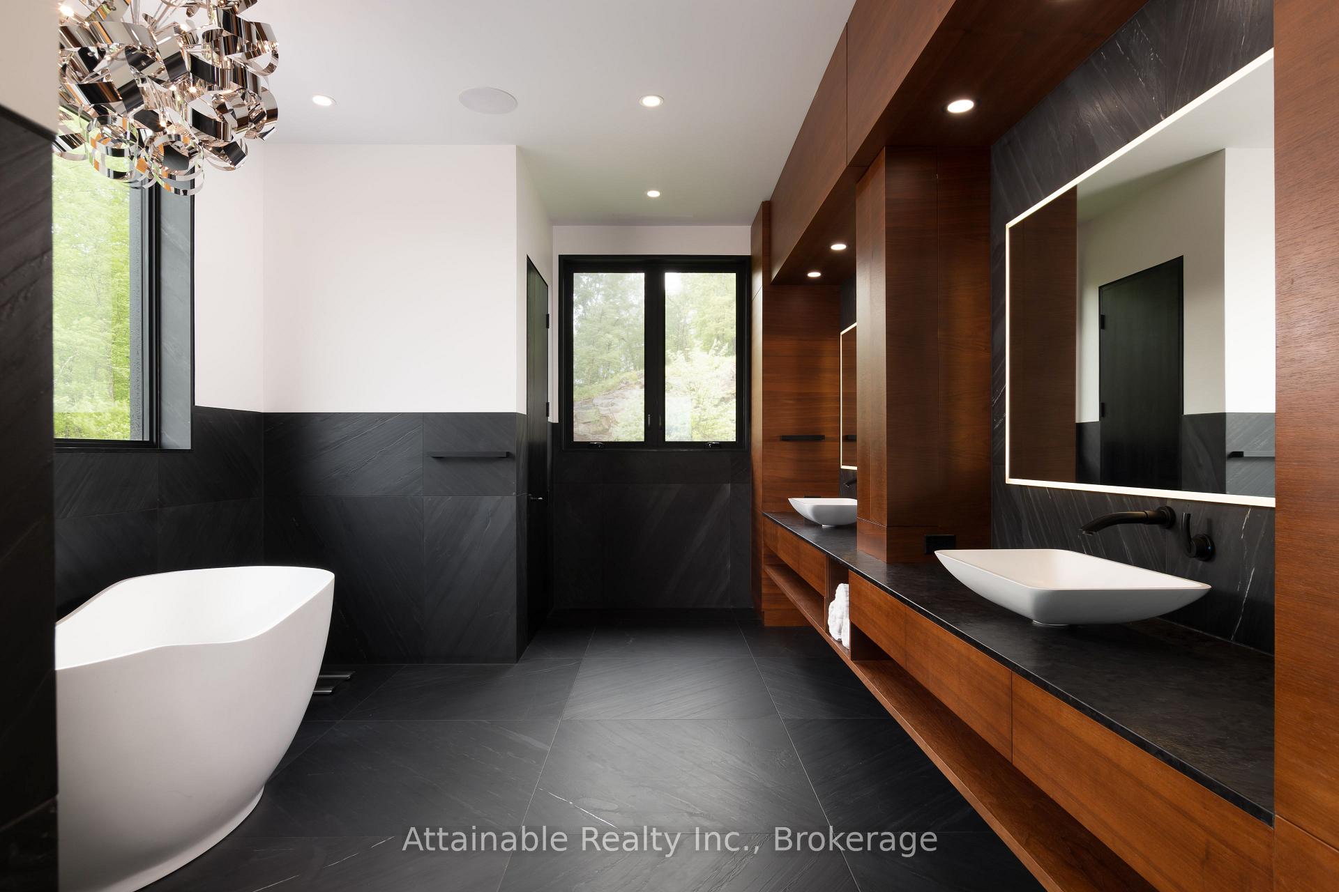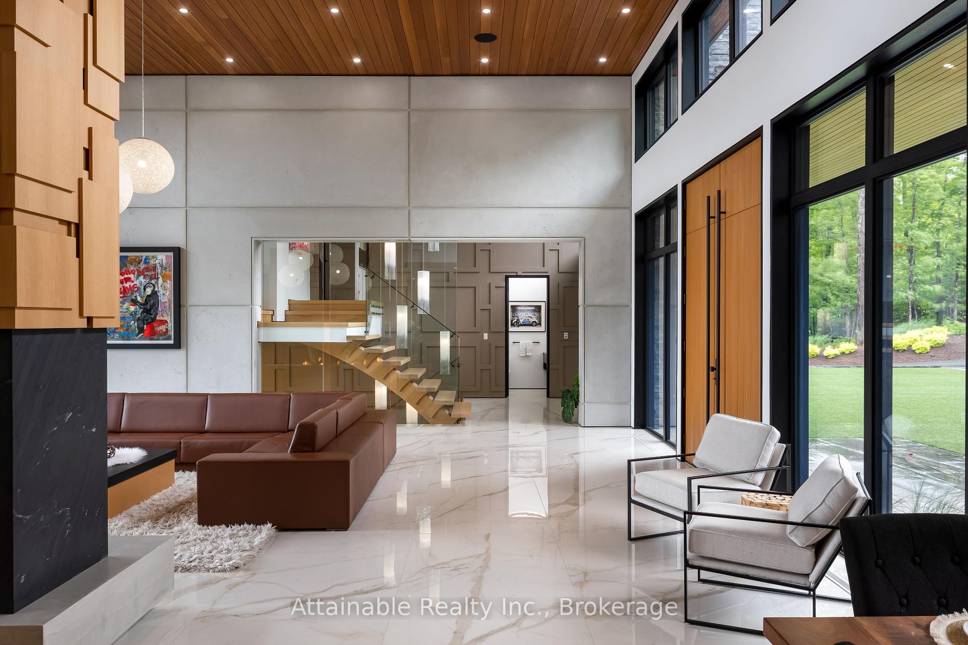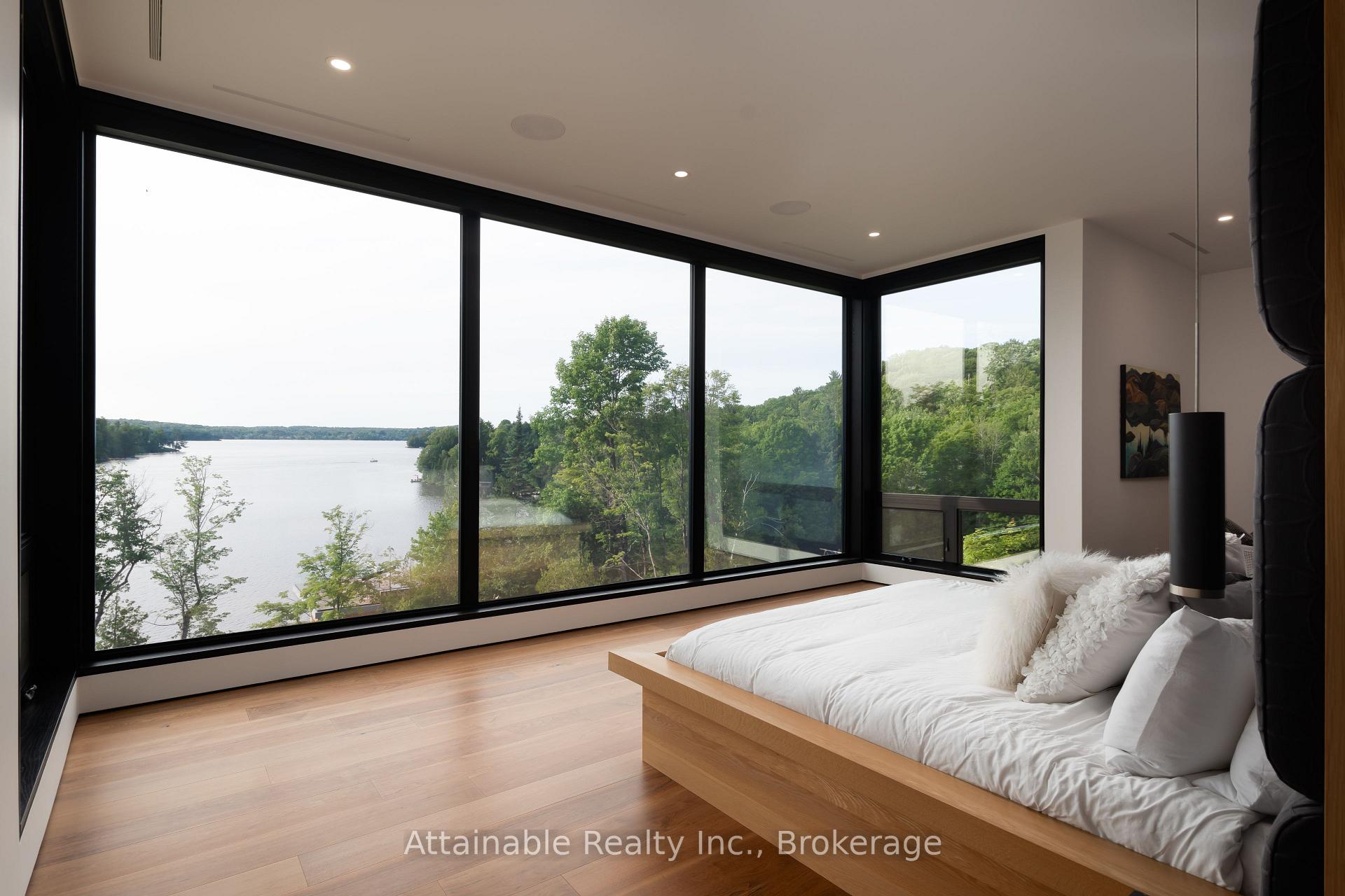 Welcome to your dream retreat on the serene shores of Fairy Lake in Huntsville, Ontario. This stunning modern lakefront home offers the ultimate in Muskoka living, blending contemporary elegance with breathtaking natural beauty. With 4 spacious bedrooms and 6 luxurious bathrooms, this home features high-end finishes, clean architectural lines, and an open-concept design perfect for both relaxing and entertaining. This home also has in floor heating in all the garages and the home. Expansive windows frame unobstructed lake views, while a Control4 smart home system puts lighting, audio, security, and more at your fingertips. Step outside to a private waterfront oasis with low-maintenance modern turf, striking stone accents, and a boathouse for endless summer fun. Enjoy lakeside dining with the industrial-grade outdoor kitchen and BBQ area, ideal for entertaining in style. Inside, the extensive home gym is equipped with high-end, commercial-quality machines, making wellness part of your daily routine. The detached garage with its own bathroom offers flexible use as a guest suite, gym extension, or studio, and the high-end garages provide ample space for vehicles and storage. What truly sets this property apart are the additional lots on either side, offering unmatched privacy, expansion potential, or a rare investment opportunity a major value add for discerning buyers seeking scale and exclusivity. All of this is just minutes from the shops, dining, and charm of downtown Huntsville. While enjoying the peace and prestige of lakefront living in one of Muskoka's most desirable locations.
