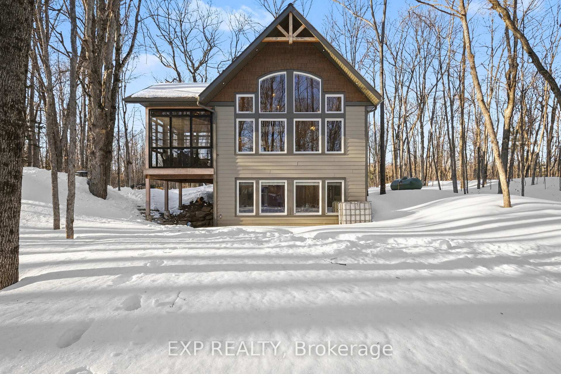 Welcome to 20 Crestview Drive in Calabogie, Ontario. A stunning Linwood Homes custom-designed for four-season living, adventure, and income flexibility. Located just minutes from Calabogie Peaks ski hill and offering deeded dock access to Calabogie Lake, this property delivers the ultimate Ontario lifestyle retreat. The main level features an open-concept Delauriers kitchen, dining, and living area wrapped in expansive windows that bring the surrounding forest indoors. Natural timber beams create warmth and architectural character, while the attached three-season sunroom by Sunspace extends your living space and invites peaceful mornings and relaxed evenings. Upstairs, you'll find two comfortable bedrooms and a full bathroom. The main level includes the primary bedroom and full bath, creating flexible space for family or guests. The fully finished lower level functions as a separate living suite complete with its own bedroom, bathroom with a heated floor, and an open living area. Ideal for multi-generational living, extended guests, or short-term rental income. Outdoor enthusiasts will appreciate proximity to skiing at Calabogie Peaks Resort, golf at the nearby nine-hole course, ATV and snowmobile trails, Nordic walking paths, beach volleyball, and lake access. Whether you are searching for a weekend getaway from Ottawa, a full-time residence immersed in nature, or a property with Airbnb potential in Calabogie, this home offers unmatched versatility. Live here full-time. Escape here on weekends. Or create a smart investment in one of Ontario's most dynamic recreational communities. 20 Crestview Drive is more than a home. It's a lifestyle opportunity. The property is being sold turn-key with all furnishings.