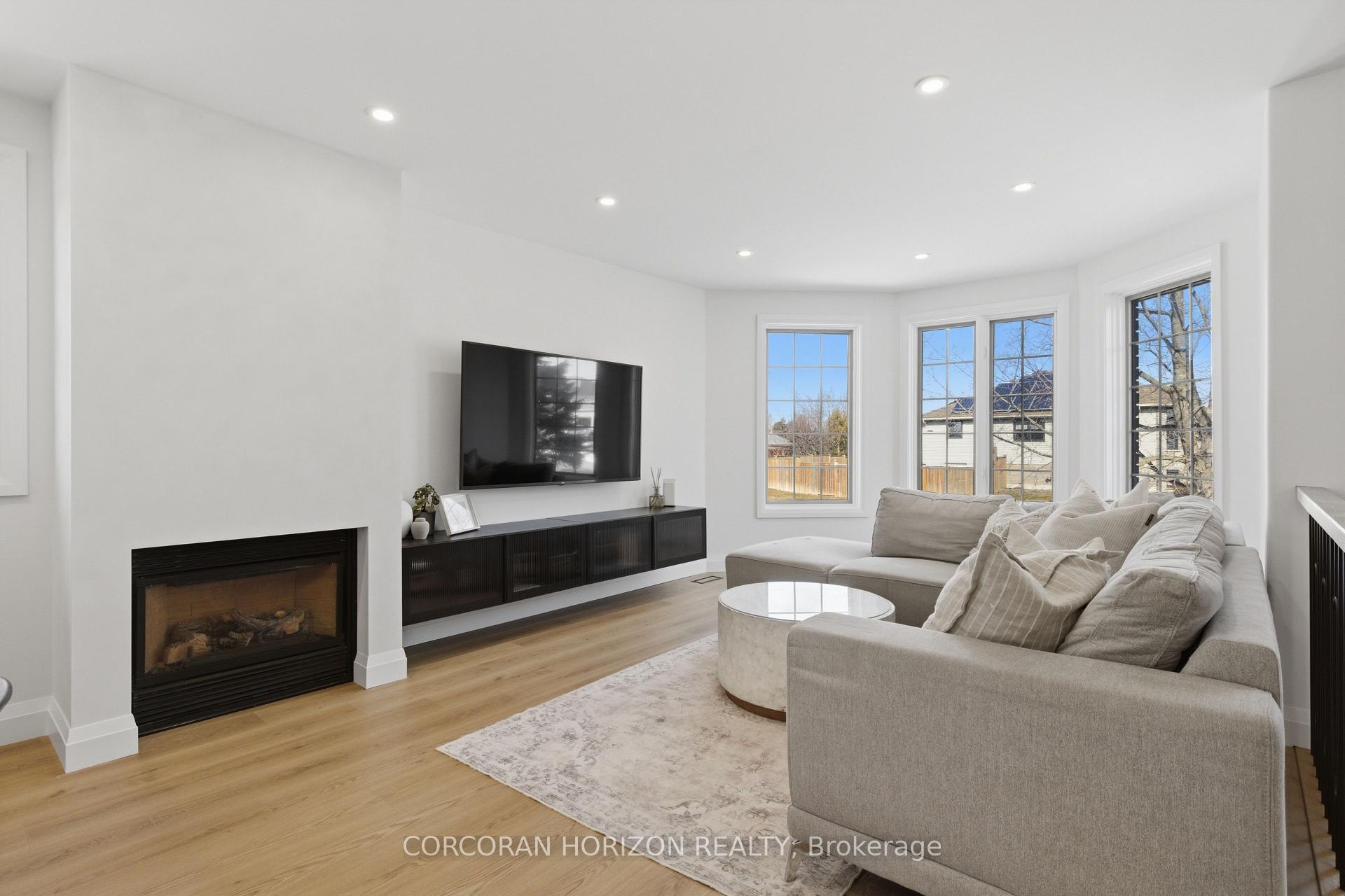 Welcome to 5 Bradbury Crescent in the charming town of Paris, a beautifully updated raised bungalow tucked into the quiet, family friendly Telferwood Estates neighbourhood. Offering 2+1 bedrooms and 3 full bathrooms, this home has been thoughtfully renovated to create a bright and inviting space that feels both modern and comfortable. Step inside to an open and airy foyer with convenient garage access and stairs leading to the main floor, finished with a custom oak railing. The open concept living and dining area is filled with natural light from large windows and centered around a cozy gas fireplace. The fully renovated kitchen (2025) features quartz countertops, a large custom 4 ft by 8 ft island, natural gas stove, new stainless steel appliances, and plenty of cabinetry and prep space. Sliding doors off the kitchen lead to a composite deck with pergola, perfect for relaxing outdoors or hosting summer barbecues with the natural gas BBQ hook up. The fully fenced backyard offers added privacy with no rear neighbours. The main level includes a spacious primary bedroom with a walk-in closet featuring custom built-ins and a private ensuite with a tiled glass walk-in shower. A second bedroom and full bathroom complete this level. Downstairs, the finished lower level provides additional living space with a large recreation room featuring a second gas fireplace, an additional bedroom, a full bathroom, and a generous utility room and workshop. Additional features include waterproof laminate flooring throughout the main floor, an owned hot water tank (2024), central vacuum, reverse osmosis system, water softener, irrigation system, and a double car garage with partial 12 ft ceilings. Located within walking distance to Catholic and public elementary schools as well as the local high school, and just minutes from restaurants, shopping, and the scenic downtown of Paris.