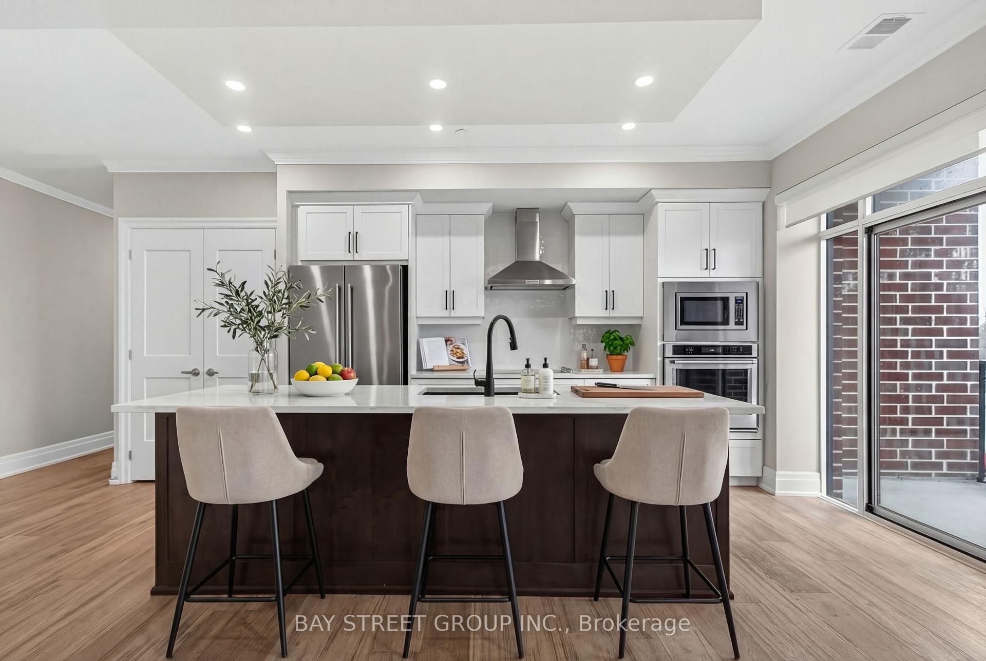 Welcome to NorthLink Condominiums by Tricar, where upscale design meets effortless condo living. This exceptional Signature Suite offers approximately 1,700 sq. ft. of beautifully finished interior space, complemented by a stunning 555 sq. ft. private terrace and an additional 110 sq. ft. balcony. Featuring two spacious bedrooms, including one with its own generous balcony, and a bright open-concept living area with an elegant electric fireplace and walk-out to the oversized terrace, this home is perfect for both relaxing and entertaining. Premium upgrades include fine cabinetry, quartz countertops, stainless steel and built-in appliances, 7" wide plank engineered hardwood flooring, and custom designer lighting throughout. Two exclusive parking spaces are included-one with an EV charger-plus ample visitor parking. Residents enjoy access to outstanding amenities, including a fitness studio, golf simulator, resident lounge, and sports court, making this an ideal opportunity for those seeking luxury, convenience, and maintenance-free executive living.