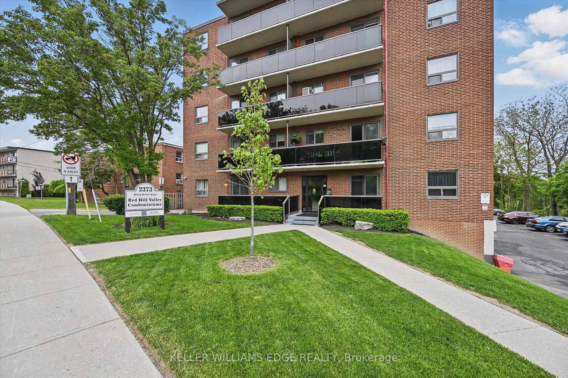 Welcome to this bright and stylish 1-bedroom, 1-bathroom condo offering 618 square feet of comfortable, well-designed living space on the forth floor of a quiet and well-maintained building in East Hamilton. The modern kitchen features quartz countertops, a double undermount sink, and a convenient breakfast bar, seamlessly opening into the living area. From here, step out onto your private balcony-an ideal spot to enjoy your morning coffee or unwind while taking in the evening sunset. The generously sized bedroom and windows provide an abundance of natural light throughout. Additional features include secure building entry, elevator access, low monthly condo fees, a clean and well-kept on-site laundry room, one dedicated parking space, and a storage locker conveniently located just steps from the unit. The building is surrounded by mature trees and green space, with plenty of visitor parking available. Located just minutes from the Red Hill Valley Parkway, the Lincoln Alexander Parkway, and the QEW, this location is ideal for commuters. Outdoor enthusiasts will appreciate the close proximity to Red Hill Bowl Park and direct access to the Red Hill Valley Trail, providing easy opportunities to enjoy nature close to home. A fantastic opportunity for first-time buyers, downsizers, or anyone seeking move-in-ready, low-maintenance living in a connected and welcoming neighbourhood.
