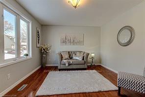 Upper level of this well-maintained raised bungalow available for rent. This bright unit features 2 good-sized bedrooms, 1 full bathroom, a spacious living room, and hardwood flooring throughout. Functional kitchen with ample cabinet space. One bedroom offers a sliding door walkout to the deck. Laundry located in the basement. Two parking spots on the driveway available for the upper level unit. Conveniently located close to parks, trails, schools, shopping, and with quick access to Hwy 401. Tenant responsible for 60% of utilities, including hydro, gas, and hot water heater rental. Preference for working professionals or small family.