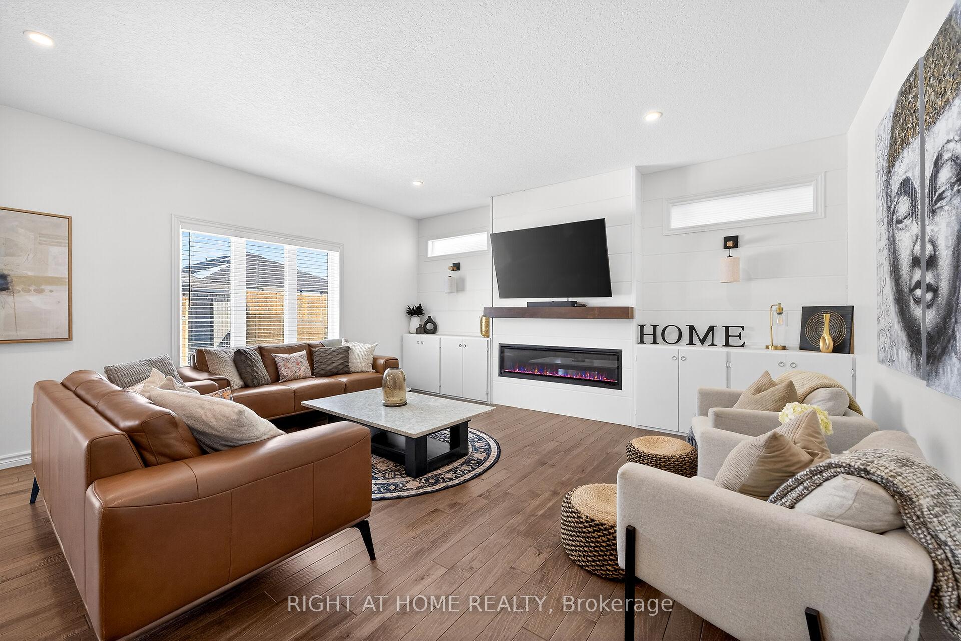 74 Farley: Where Custom Craftsmanship Meets Resort-Style Living. Experience the perfect blend of luxury and comfort in this meticulously maintained 2018 custom home by renowned builder James Keating. Thoughtfully crafted with timeless design and high-end finishes, this residence is an entertainer's dream, boasting over 3500 sq ft of living space, offering five spacious bedrooms and four bathrooms across a refined, open-concept floor plan. The main level makes a grand impression with soaring 9-foot ceilings and rich hardwood flooring. At its heart lies a chef's kitchen featuring quartz countertops, premium appliances, and a custom gathering island that flows seamlessly into a family room anchored by a stunning feature wall. For those working from home, the separate dining room doubles as a sophisticated executive office. The elegance continues upstairs with four generous bedrooms, including a primary retreat featuring a walk-in closet and a newly updated spa-inspired ensuite. The lower level extends the living space further with a professionally finished basement, complete with a custom wet bar, large rec room, and an additional bedroom with an egress window. Step outside into your private backyard oasis. Whether hosting summer soirées or enjoying quiet evenings, the heated saltwater pool and charming cabana create a vacation-at-home atmosphere. Located in a premier Fergus neighborhood, you are moments from top-tier schools, parks, and charming local amenities.
