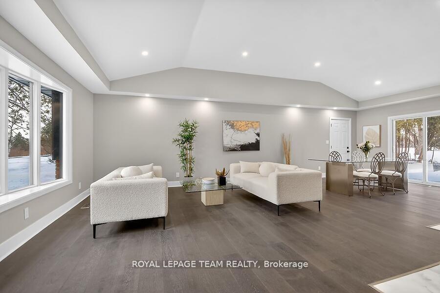 *OPEN HOUSE SUNDAY, MARCH 15TH 2-4PM* LOCATION, GOLF & LIFESTYLE. Completely renovated & elevated to a whole new level , Gorgeous vaulted ceilings & open concept this stunning 2+2 bedrooms, 3 ensuites 2 are cheaters. This beautifully renovated bungalow sits in one of the area's most coveted settings. With no front or rear neighbours, the home backs onto the first hole of the Carleton Golf Club and fronts onto a picturesque stretch of the Rideau River.Move right into this like-new home and add your own personal touches. Designed with space and comfort in mind, it offers a bright, spacious living room anchored by a striking stone wood fireplace attached to main floor is a spacious Sunroom to enjoy those summer evenings in outdoor setting. The primary suite is a true retreat with a beautiful ensuite & an impressive walk-in closet. A second main-floor bedroom features a convenient cheater bath.Enjoy the three-season sunroom, plus a large fully finished basement with a full bathroom and two additional bedrooms both featuring oversized windows & bonus family rooms. additional updates since 2015 include: R50 attic insulation, 200-amp electrical panel, air conditioning, two sump pumps with marine battery backup, & full basement foundation waterproofing..