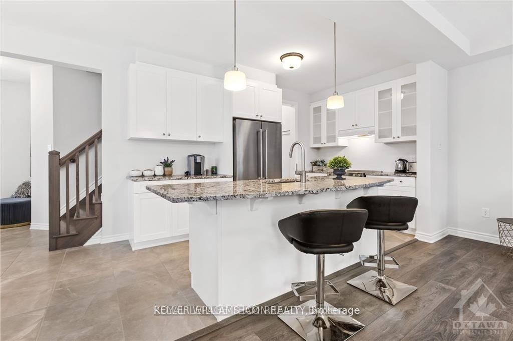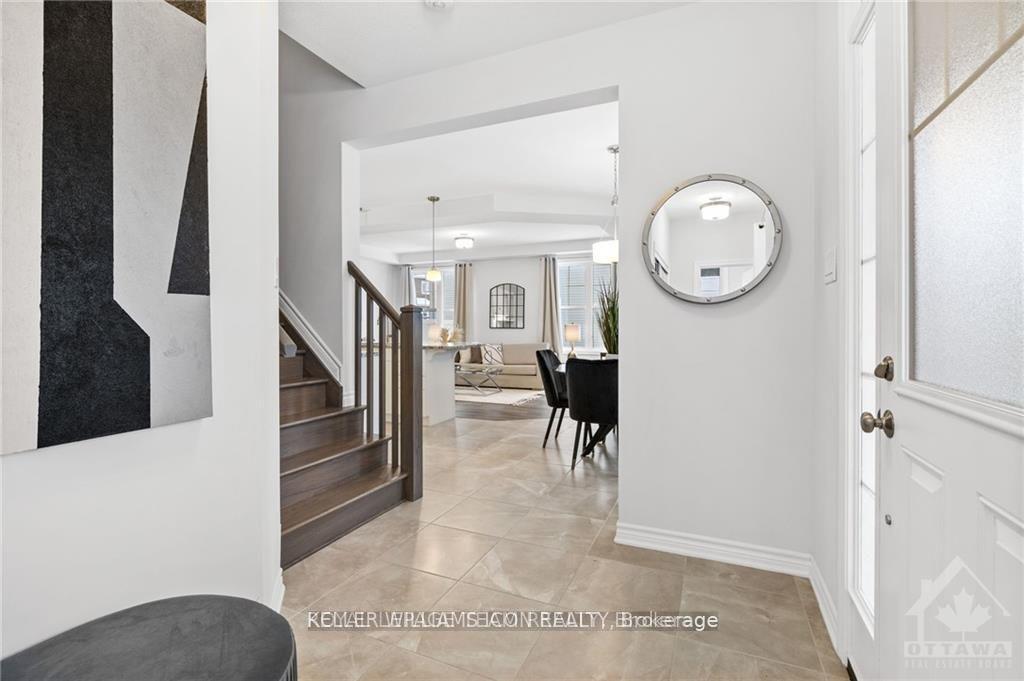 FULLY FURNISHED turnkey residence where you simply arrive with your luggage and settle in. This exceptional double-garage detached home in the prestigious Half Moon Bay community offers beautiful views of the Jockvale River and an unbeatable location just steps to Barrhaven shopping, parks, and public transit.Thoughtfully designed with upscale finishes throughout, the home features 3 spacious bedrooms, 3 elegant bathrooms, and a versatile loft. The main level boasts an impressive open-concept layout with soaring 9-ft ceilings, creating a bright and inviting living space. The chef-inspired kitchen is the centerpiece of the home, highlighted by an extended breakfast bar with Brazilian natural stone countertops, premium tile flooring, and upgraded designer lighting.A stunning oak staircase leads to the second-level loft, perfectly suited for a refined home office overlooking the scenic Jockvale River. The spacious primary suite offers a walk-in closet and a beautifully appointed ensuite bathroom. Two additional bright bedrooms and a full bathroom complete the upper level.All bathrooms are finished with granite countertops, and custom blackout drapery is installed in each bedroom for comfort and privacy.Enjoy refined living in one of Barrhaven's most desirable neighbourhoods, surrounded by top schools, parks, shopping, and convenient transit. This home presents like new and offers a rare fully furnished luxury leasing opportunity. Photos were taken prior to tenant occupancy.