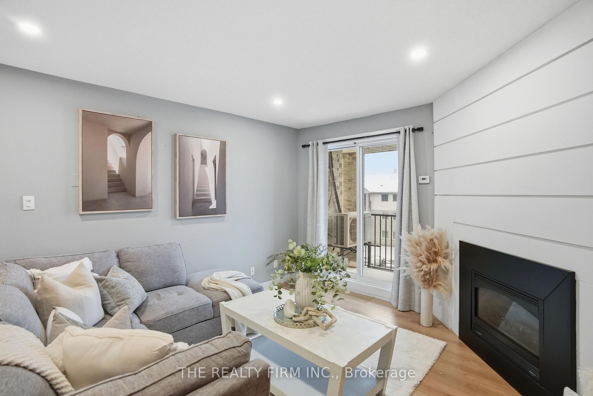 Welcome to this beautifully updated 3-bedroom, 1.5-bathroom end-unit condo, ideally located on the top floor for added privacy and abundant natural light. As you enter, you're greeted by a spacious foyer with a large hall closet-perfect for everyday storage and organization. The modern white kitchen has been enhanced with a chic tile backsplash, under-cabinet lighting, and plenty of cabinetry, offering a seamless flow into the open-concept dining and living area. Whether you're entertaining guests or enjoying a quiet evening, this space is designed to suit all your needs. The living room is a true highlight, featuring a stunning gas fireplace feature wall, recessed pot lights, and durable laminate flooring. It also provides direct access to your east-facing balcony, an ideal spot to sip your morning coffee and enjoy the sunshine. Each of the three generously-sized bedrooms are thoughtfully designed, complete with closet organizers to maximize storage. Both bathrooms have been tastefully updated with elegant ceramic tile finishes, and the in-suite laundry and dedicated storage room add extra convenience to daily life. Additional features of the unit include ductless central air (2020) and water included in the condo fees. This home is located in the highly sought-after Pond Mills neighbourhood, offering access to an outdoor pool, with easy proximity to the highway, hospital, shopping, public transit, and schools. It's an ideal spot for commuters and families alike.