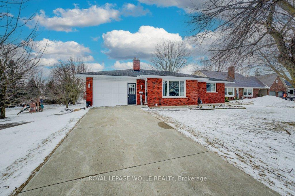 Solid brick bungalow with walkout basement in the quiet community of Linwood. Set on a nearly a 1/2 acre lot offering space, flexibility and an excellent in-law potential. This home features 2+1 bedrooms and 3 bathrooms including a convenient cheater ensuite. There is a large living room and a spacious open concept kitchen/dining area with patio doors leading to an upper deck overlooking the expansive private backyard. The finished walkout basement includes luxury vinyl plank flooring, a bedroom, 3-piece bath, and rough-in for a kitchenette. This makes for it ideal for multigenerational families with access to a covered concrete patio, perfect for relaxing or entertaining. Additional highlights include main floor laundry, only carpet on the stairs leading to the basement, concrete driveway, roof approximately 5 years old, an attached garage plus a 2nd garage under the home with rear access from its own driveway, providing plenty of parking. A great opportunity to enjoy small-town living with an abundance of room inside and out.