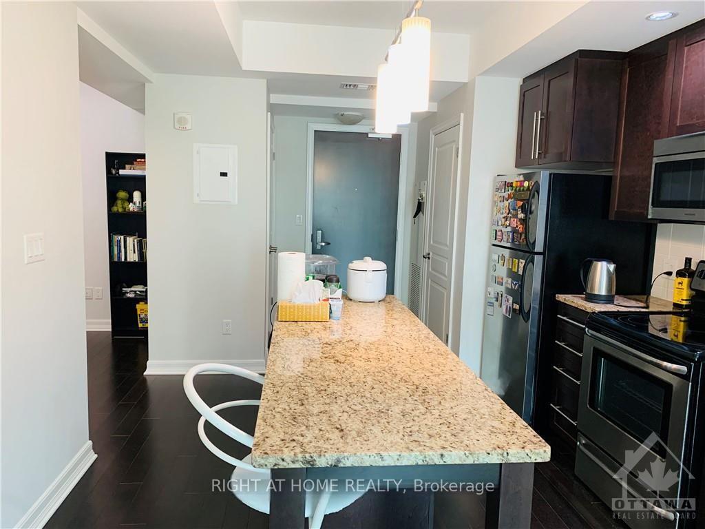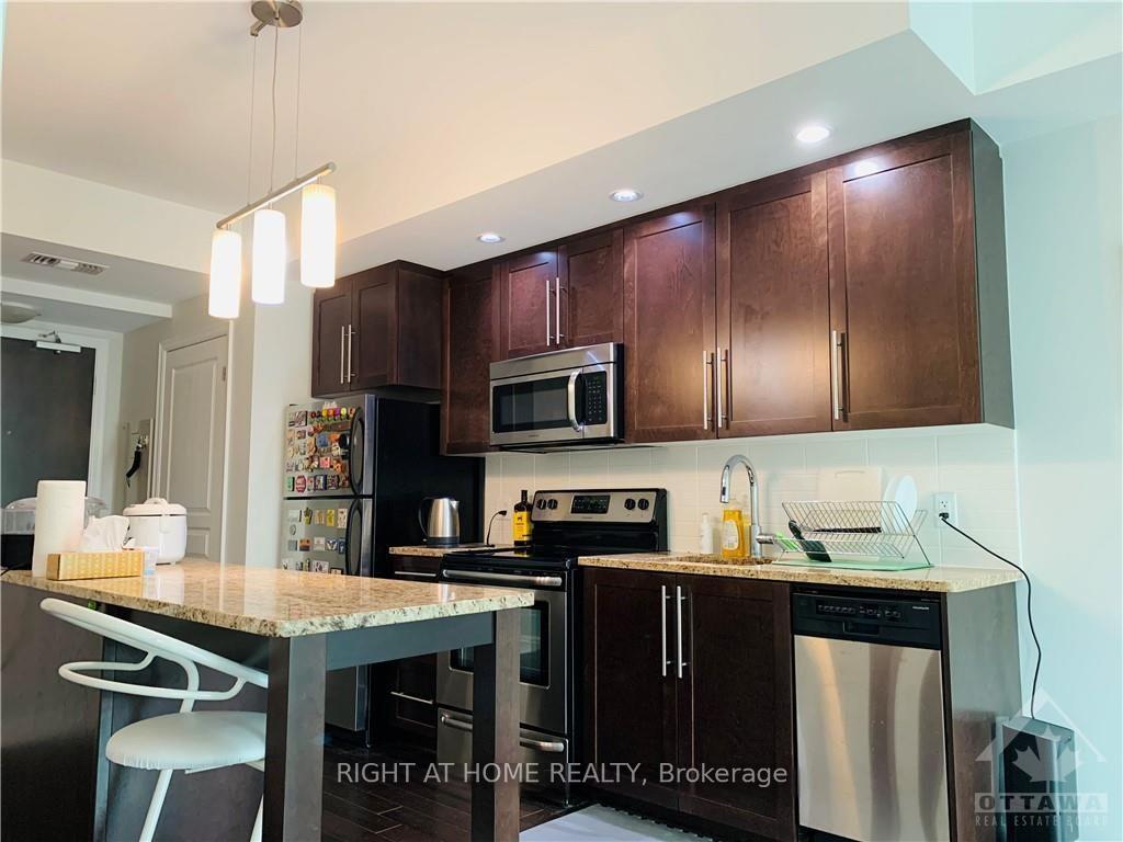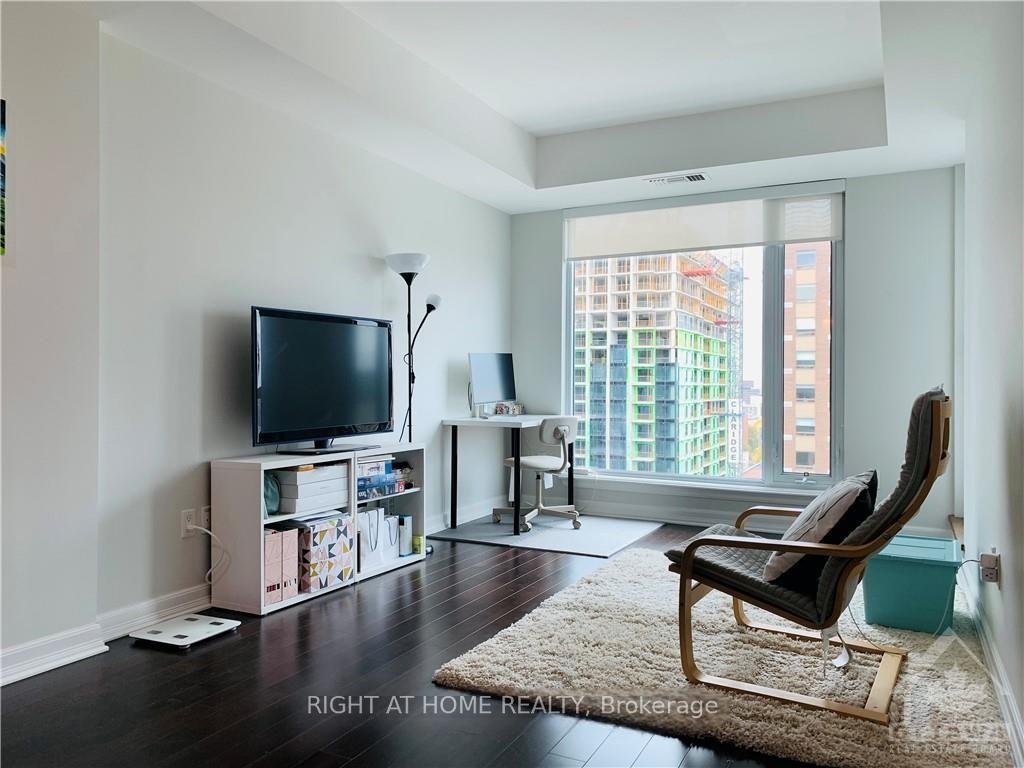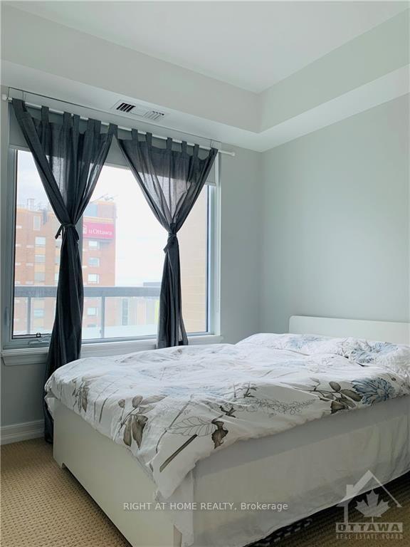 Welcome to this beautiful luxury 1 Bedroom plus Study/Den Located in the perfect downtown location on the 12th floor with fantastic views facing North toward the Byward market and has its own private balcony. The suite features in-suite laundry, beautiful hardwood floors, custom cabinets, stainless steel appliances and granite countertops and kitchen island that will all impress you. The suite has floor to ceiling windows with custom blinds in both the bedroom and living room. Working or studying from home is easy with the added Study/Den. The building has full amenities including indoor pool, sauna, party room, fitness centre and BBQ area. Whether you work from home or need to commute, this location is perfect. ONE PARKING and ONE LOCKER IS INCLUDED in rent. Minutes walk to Rideau Centre, LRT station, Ottawa U, Parliament Hill, and the Byward Market. Restaurants nearby. NO smoking allowed of any kind and Preferred no Pets.
