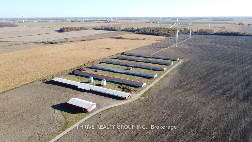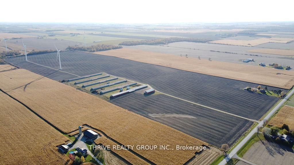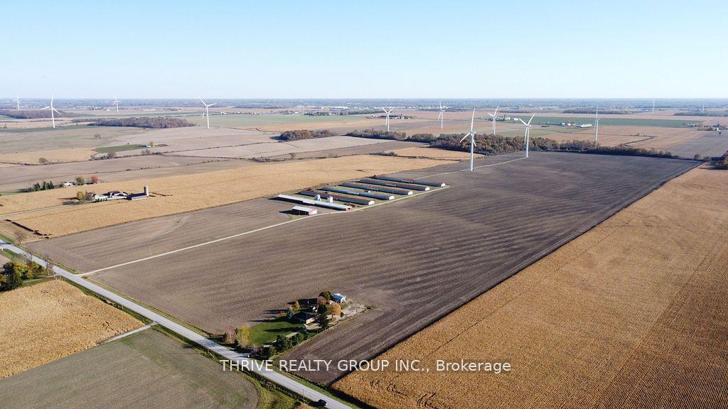 152 acres featuring 138 workable acres of silty clay loam soil. Systematically tiled every 30ft. The property includes a 48' x 104' drive shed, 6 identical 40' x 450' barns, two storage bins with a combined capacity of ~20,000 bushel, and a pump house including an auto-start diesel generator. Drive shed and barns are serviced by a 1000-amp hydro service and two 90'+ wells. The two wind turbines on the property produced ~$39,650 of income in 2025.