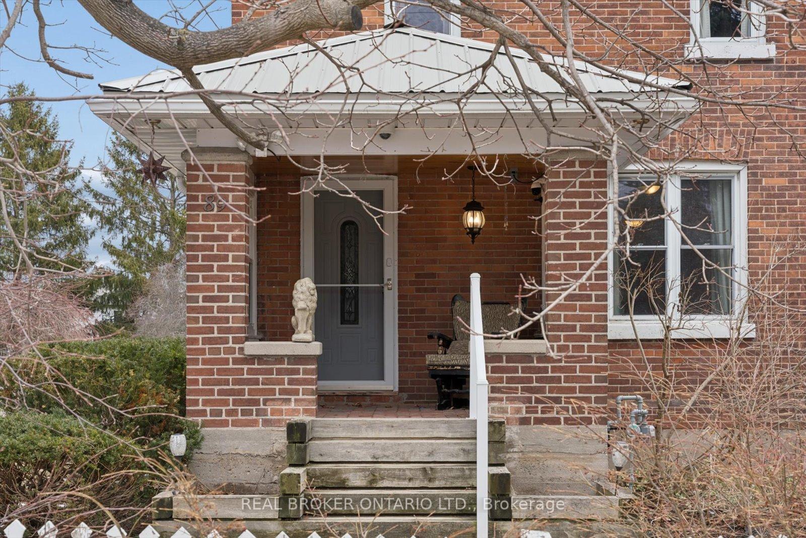 Welcome to this charming brick beauty set on an impressive and private large lot, where space is not a luxury, it is a lifestyle. A classic white picket fence frames the property while a covered front porch and wrap-around rear deck offer the perfect spots to enjoy morning coffee or unwind at the end of the day. The expansive driveway offers parking for more than 10 vehicles, plus a detached garage for added convenience. Above the garage is a bonus finished loft with a kitchenette and a 3 piece bathroom (Not winterized). Step inside and enjoy the warmth and character of this incredible home. A large eat-in kitchen features a brick wall, island, tons of cupboards, pantry, granite countertops, and a cozy wood stove plus 2 walk outs! One leads directly to a covered gazebo, making indoor-outdoor entertaining effortless. The living room offers wood flooring, french doors, a built in bookcase and a gas fireplace. Upstairs, the primary bedroom offers two windows, a double door closet, plus a walk-in closet, ceiling fan and original wood flooring. Two additional bedrooms also feature wood floors and ceiling fans. One bathroom on the main floor and one upstairs featuring a claw foot tub. The office/sunroom boasts California shutters, built-in shelving, and a separate entrance to the deck. The basement includes a cold cellar and abundant storage. Step outside and discover a backyard that feels like your own private park with mature trees including maple, pine, apple, pear, and cherry...complete with a tree house, fire pit and lush gardens. It is private, picturesque, and ready for memory-making. A standout feature is the large brick double barn with a finished loft, running water, ceiling fans and endless potential for hobbyists, entrepreneurs, or an additional workspace. This is more than a home - it is a space to grow, gather, build, and breathe. Close to shopping, 401 and schools.